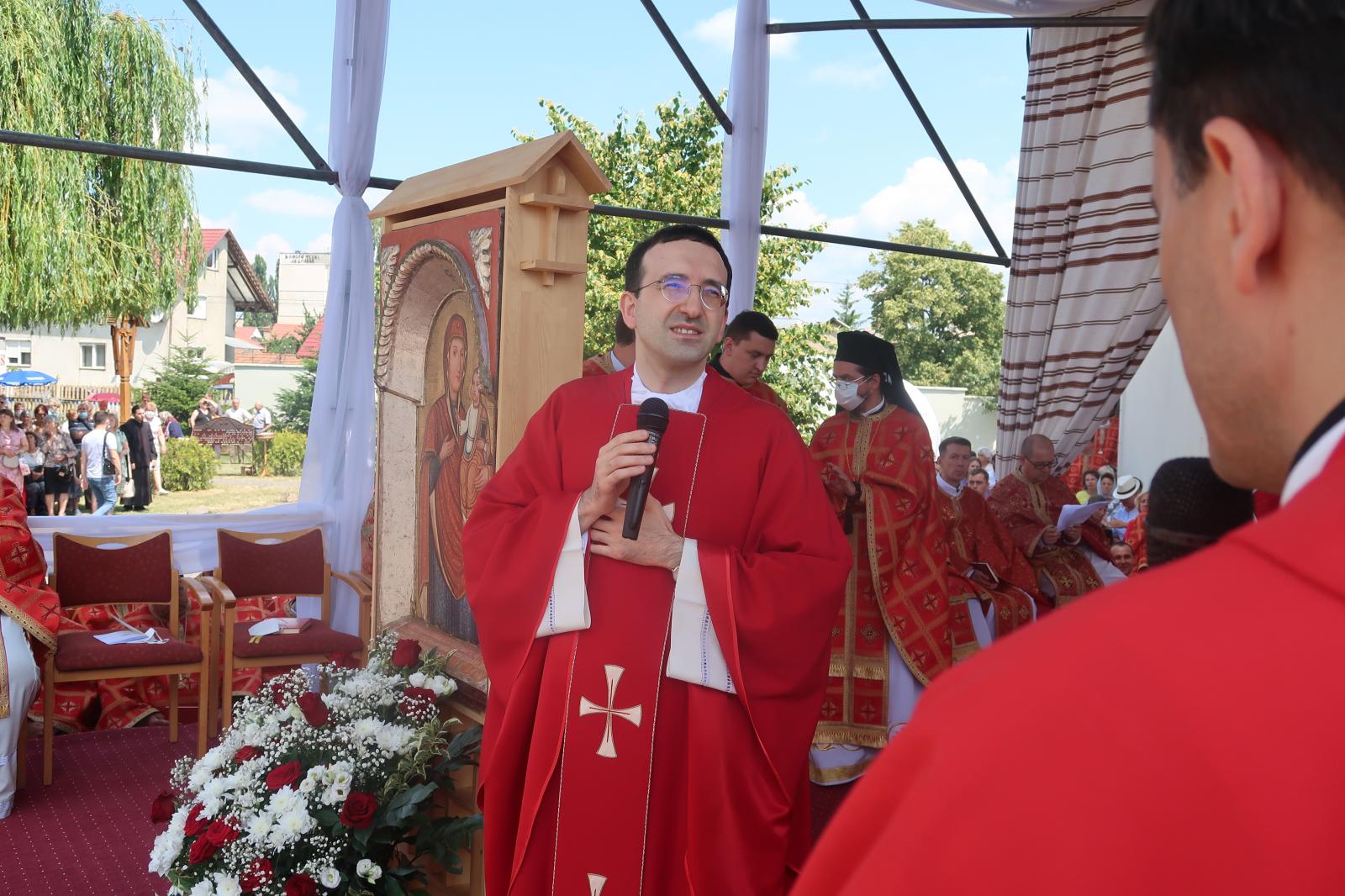 A főpásztor a szertartás végén mondott köszöntőjében kifejezte háláját azért, hogy Nílus püspök megajándékozta a magyar görögkatolikusokat Romzsa Tódor vértanú püspök ereklyéjével, amit tavaly ősszel szenteltek fel Máriapócson.