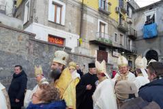 Kocsis Fülöp érsek-metropolita a máriapócsi kegykép másolatát ajándékozta a centenáriumát ünneplő eparchia püspökének, Donato Olivieronak.