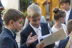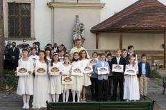 Az elsőáldozást megelőző hittanvizsga Czirják János és Lakatos Péter atyák jelenlétében és felügyelete mellett sikeresen lezajlott szombat délelőtt, amit nagy izgalmak közepette az első szentgyónás elvégzése követett.