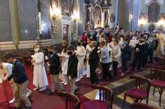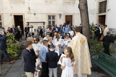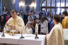 Krisztus testének és vérének első magukhoz vételét október 4-én, vasárnap délben nem otthon, a Szent Flórián templomban, hanem a közeli Batthyány-téri Szent Anna templomban ünnepelték. Jánosa Domokos plébános atya és a közösség vendégszeretete csak tovább emelte az ünnepi hangulat fényét.