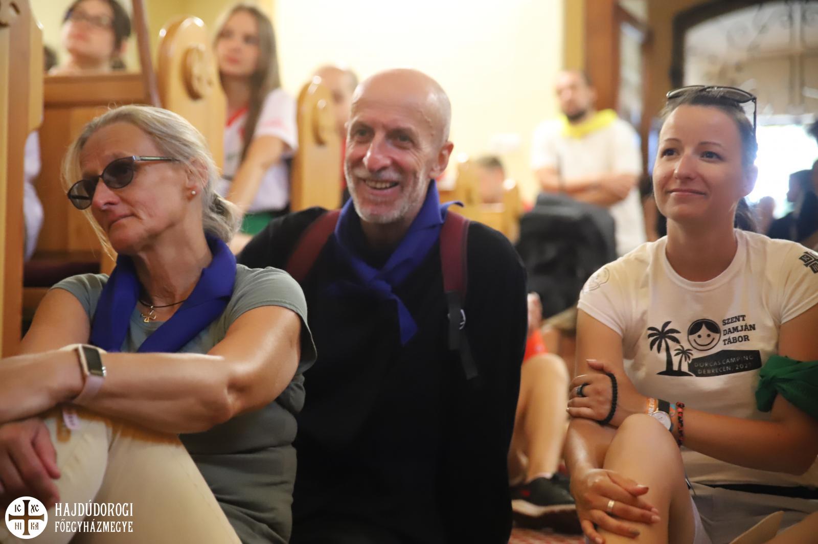 Fülöp atya a színpadon köszöntötte a közönséget. Elmondta, hogy a zarándokok minden évben útrakelnek, ezóttal Tokajból tartanak Máriapócsra. A távolság hallatán elismerő és csodálkozó megjegyzések röpködtek a közönség felől. Fülöp atya megosztotta a hallgatósággal a zarándokok egyik legfőbb tulajdonságát, azt, hogy mindenkit magukkal visznek lélekben. "Most tehát mindannyiótokat tisztelebeli zarándokká fogadunk" - mondta Fülöp atya, mely kijelentését vastaps követte.