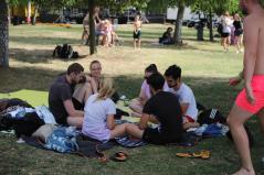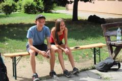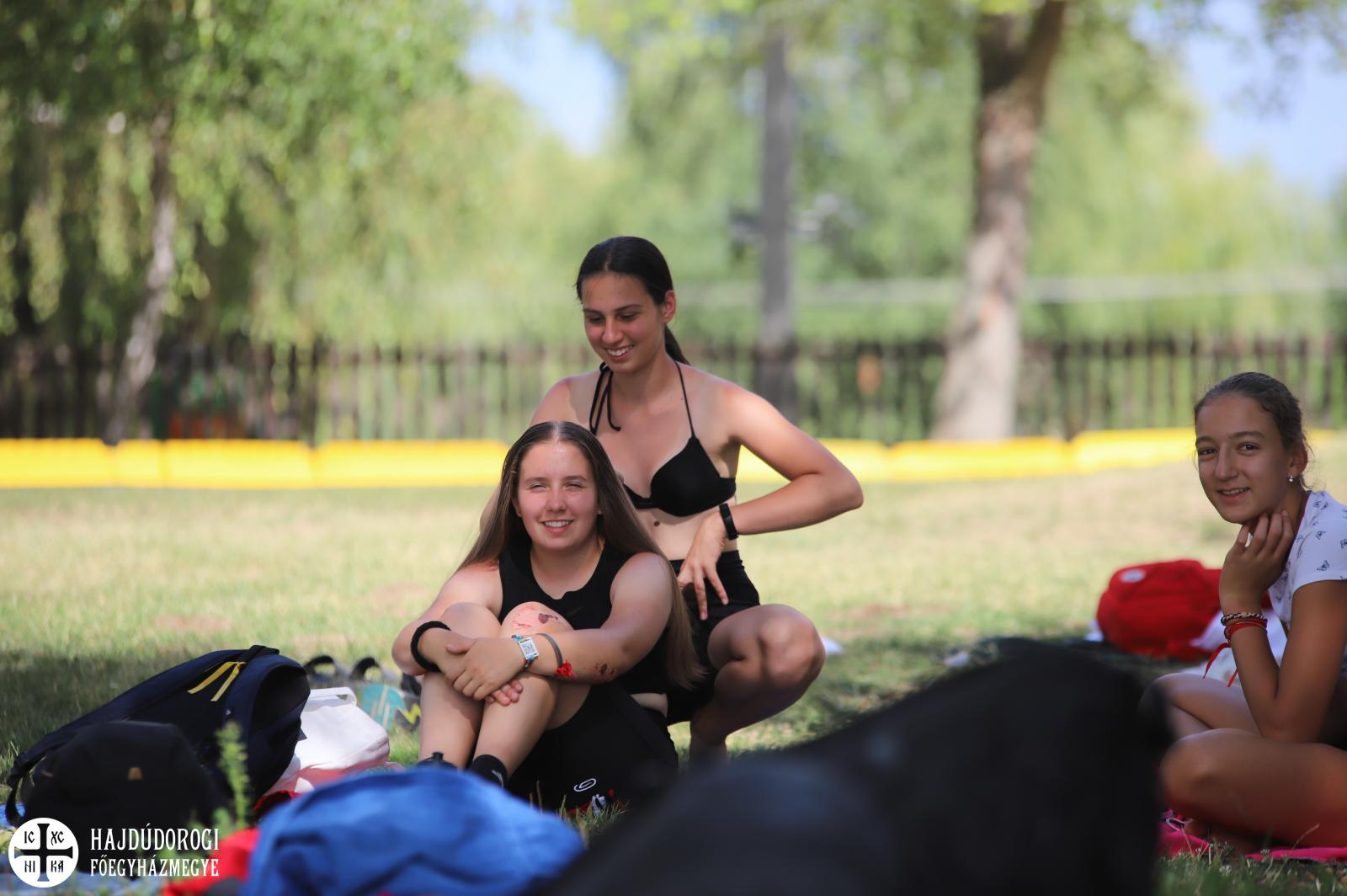 Leveleken a Gárdonyi Géza Általános Iskola tornaterme adott szállást a zarándokoknak, a csomagok átvétele előtt azonban bőséges ebéd várta őket: a szendvicsek mellett friss péksütemények, gyümölcsök, és üdítők enyhítették a nap fáradalmait. És ha ez nem lett volna elég, a szálláshelyek elfoglalását követően különbuszok szálltották a zarándokokat a leveleki tófürdőre, ahol egész estig a szabadidő kellemes eltöltése volt a "kötelező" program. Volt fürdés, labdázás, előkerült a kártya, a gitár, a könyvek. Sokan alvással, napozással, beszélgetéssel pihenték ki az elmúlt napok fáradalmait.
