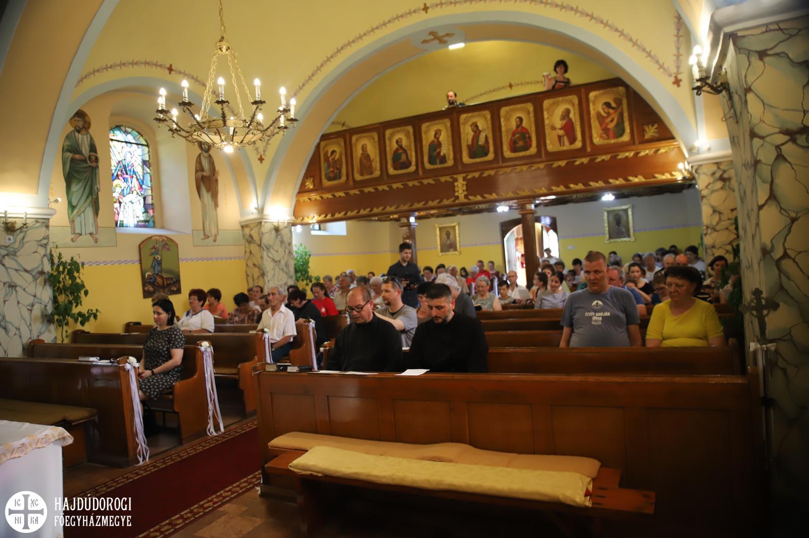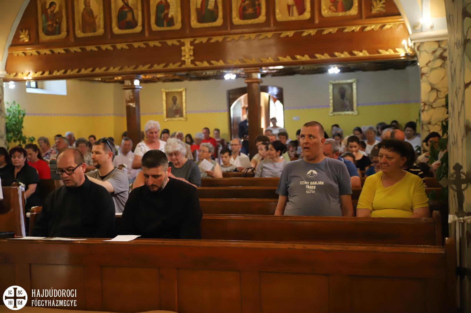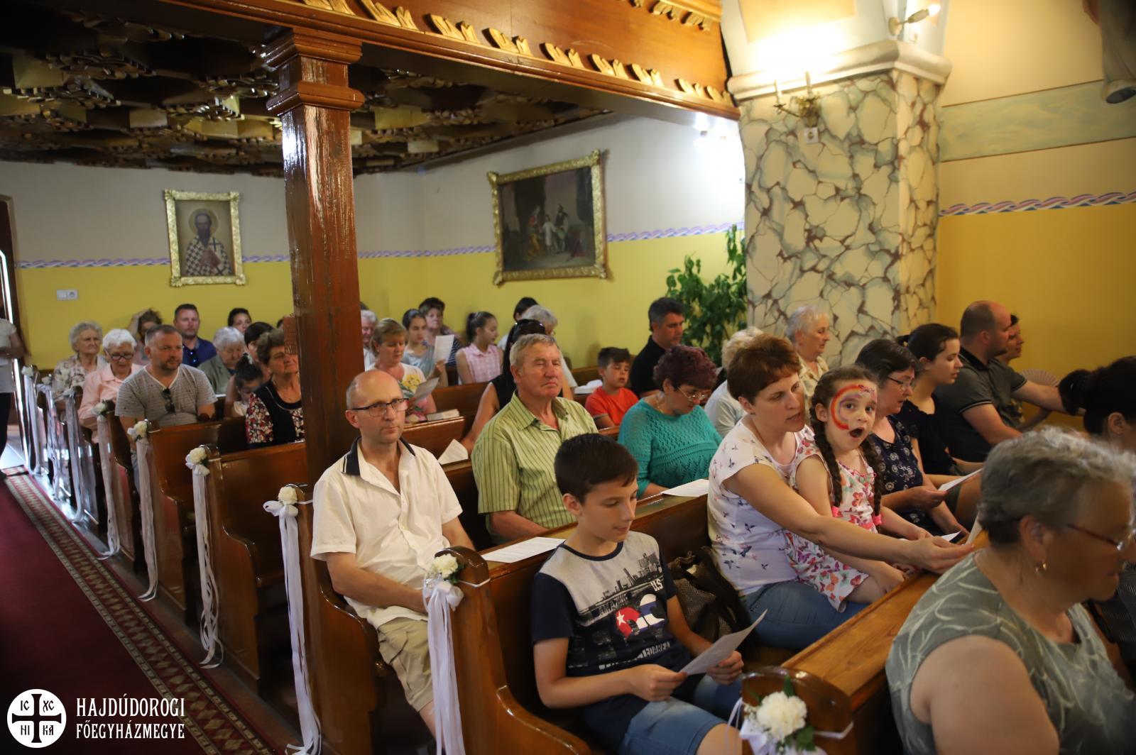 A korábbi családi összejövetelek (Család-csoda) hangulatát idéző együttlét volt Pünkösd szombatján a nyíradonyi görögkatolikus templom udvarán, kertjében. A házigazda egyházközség hívei lelkesedve készülődtek az eseményre, hogy megfelelő módon és körülmények között várják a hozzájuk érkezőket. Akik meghallották az egyházmegye hívó szavát és készültek, hogy jelen legyenek, azok részvételükkel és a jó hangulatot előidézve közösen teremtették meg ennek a délutánnak azt az örömét, amely mindig fontos a kapcsolatok területén. Legyen az jelen egy egyházközség életében, vagy az egyházmegye egész területén. Pünkösdi várakozásunk által a Lélek gyümölcseit is kértük mindehhez. A programok mellett szertartásaink tették teljessé ezt a találkozót.