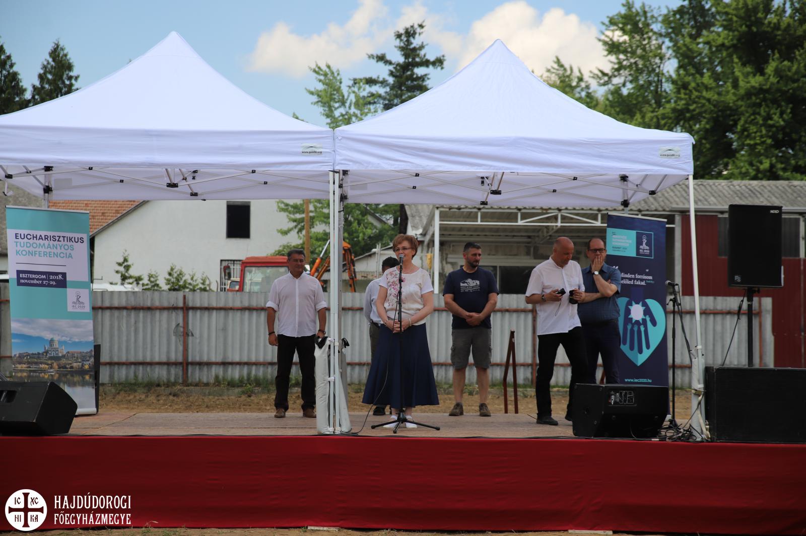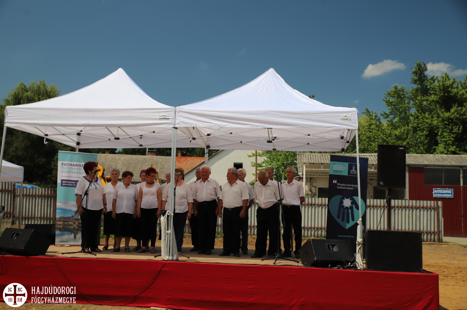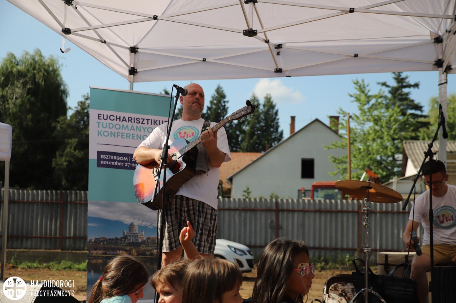 A korábbi családi összejövetelek (Család-csoda) hangulatát idéző együttlét volt Pünkösd szombatján a nyíradonyi görögkatolikus templom udvarán, kertjében. A házigazda egyházközség hívei lelkesedve készülődtek az eseményre, hogy megfelelő módon és körülmények között várják a hozzájuk érkezőket. Akik meghallották az egyházmegye hívó szavát és készültek, hogy jelen legyenek, azok részvételükkel és a jó hangulatot előidézve közösen teremtették meg ennek a délutánnak azt az örömét, amely mindig fontos a kapcsolatok területén. Legyen az jelen egy egyházközség életében, vagy az egyházmegye egész területén. Pünkösdi várakozásunk által a Lélek gyümölcseit is kértük mindehhez. A programok mellett szertartásaink tették teljessé ezt a találkozót.