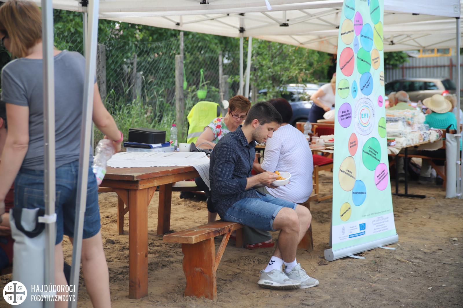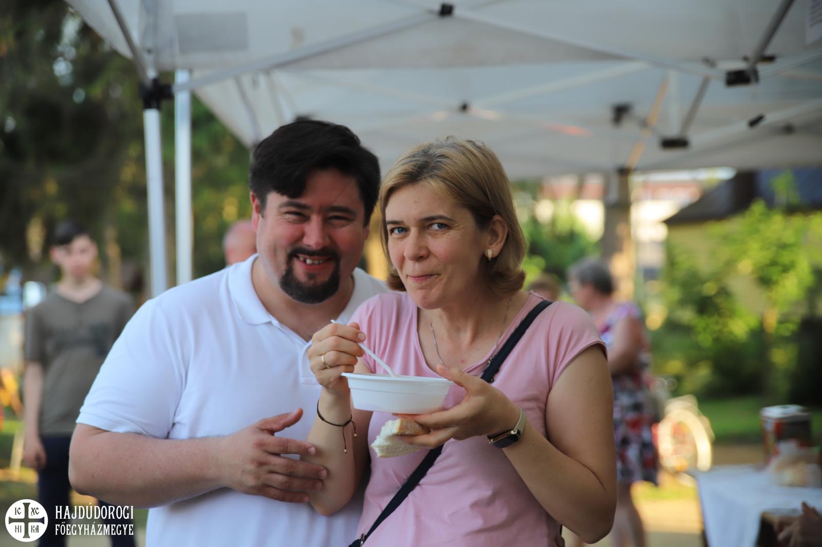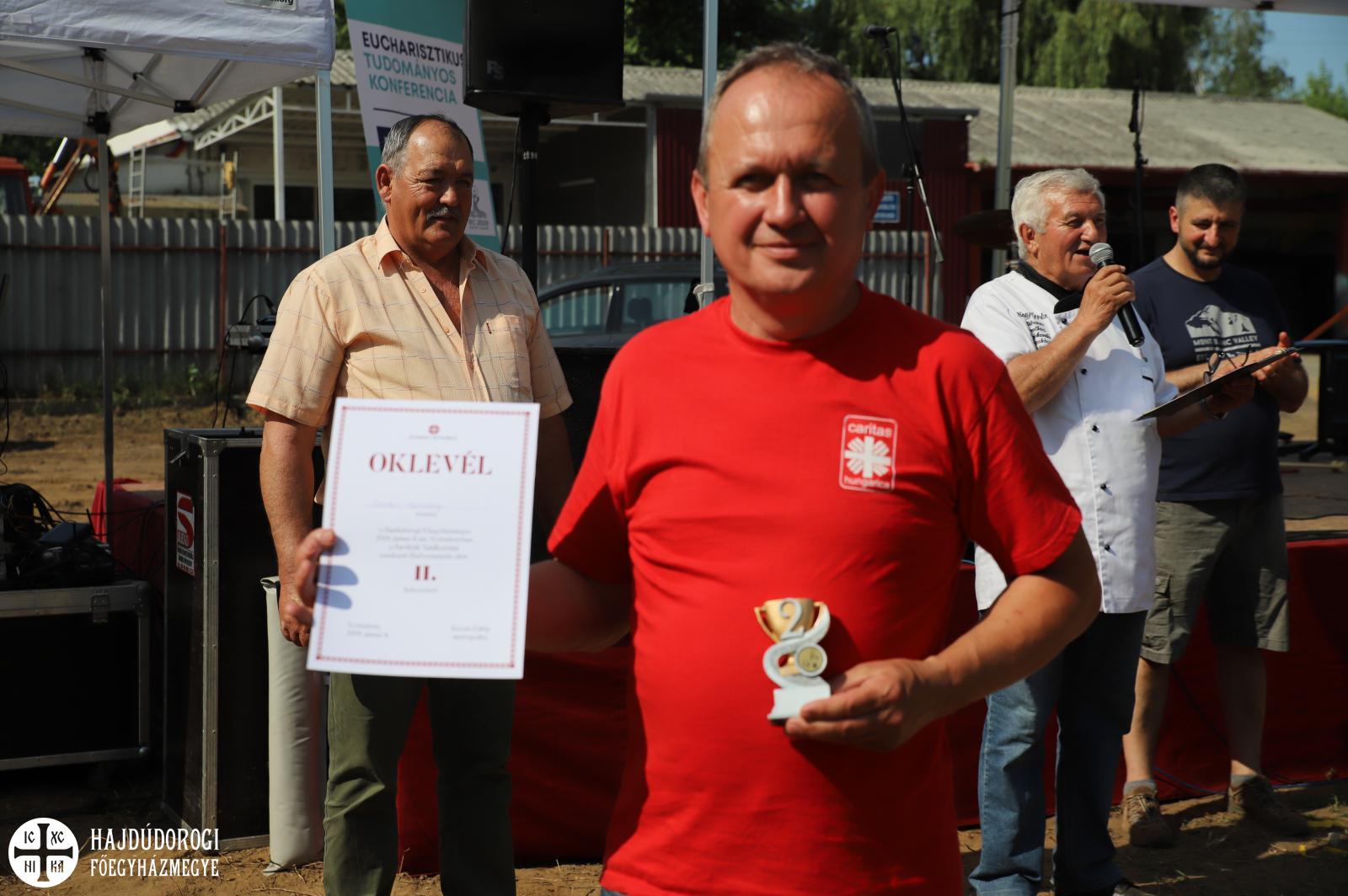 Nem maradhatott el a főzőverseny sem, amelyre több egyházközség, csoport, baráti társaság nevezett be. Az elkészült ételeket egymás között is kínálgatva, mindenkit vendégül látva fogyasztottuk el. A finom ételek között az elsőbbséget Nagy Gyula többszörös Nemzetközi Aranyfokozatú Hobbiszakács vezetésével a zsűri csapata döntötte el. Az első helyezett a nyíracsádi egyházközség lett. De nem szomorkodhatott a nyíradonyi Nyugdíjas-klub sem, s a nyíradonyi egyházközségi Karitász csoport sem. S a többiek sem, akik szívesen és örömmel készítették el ételüket.