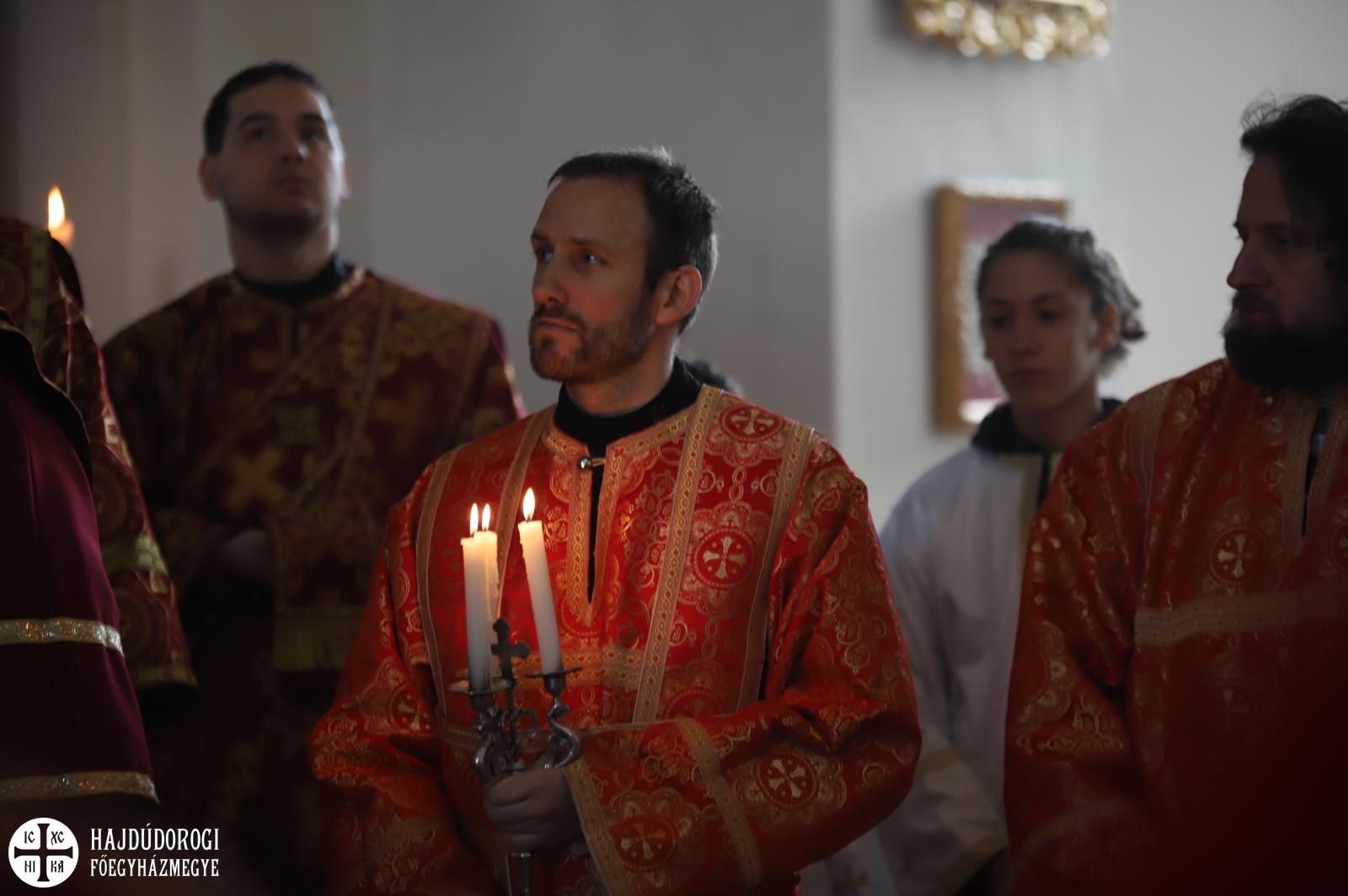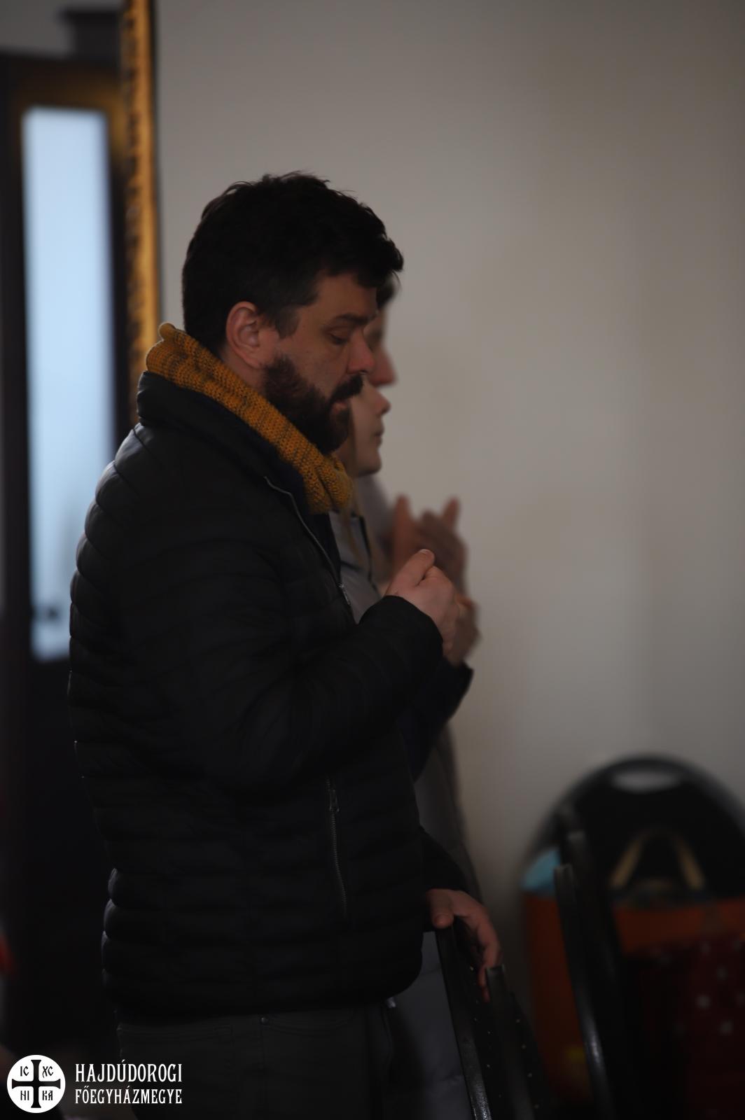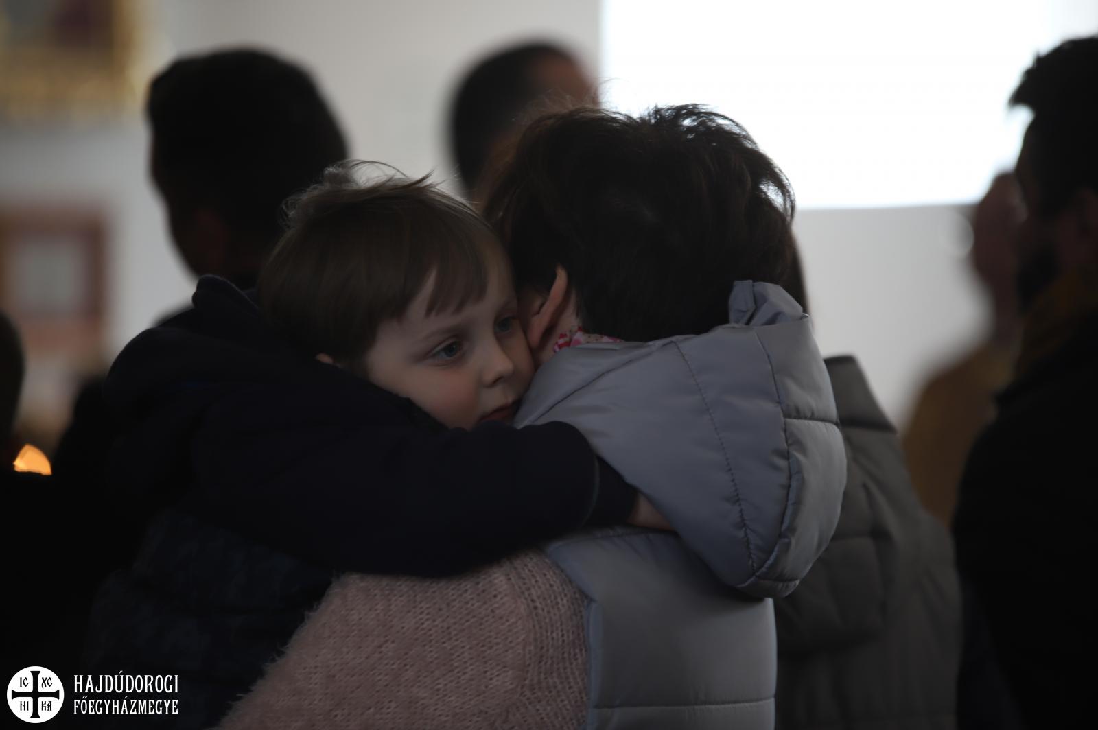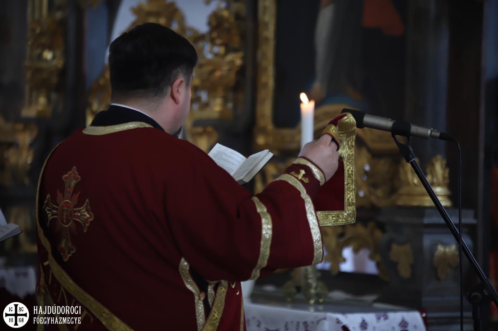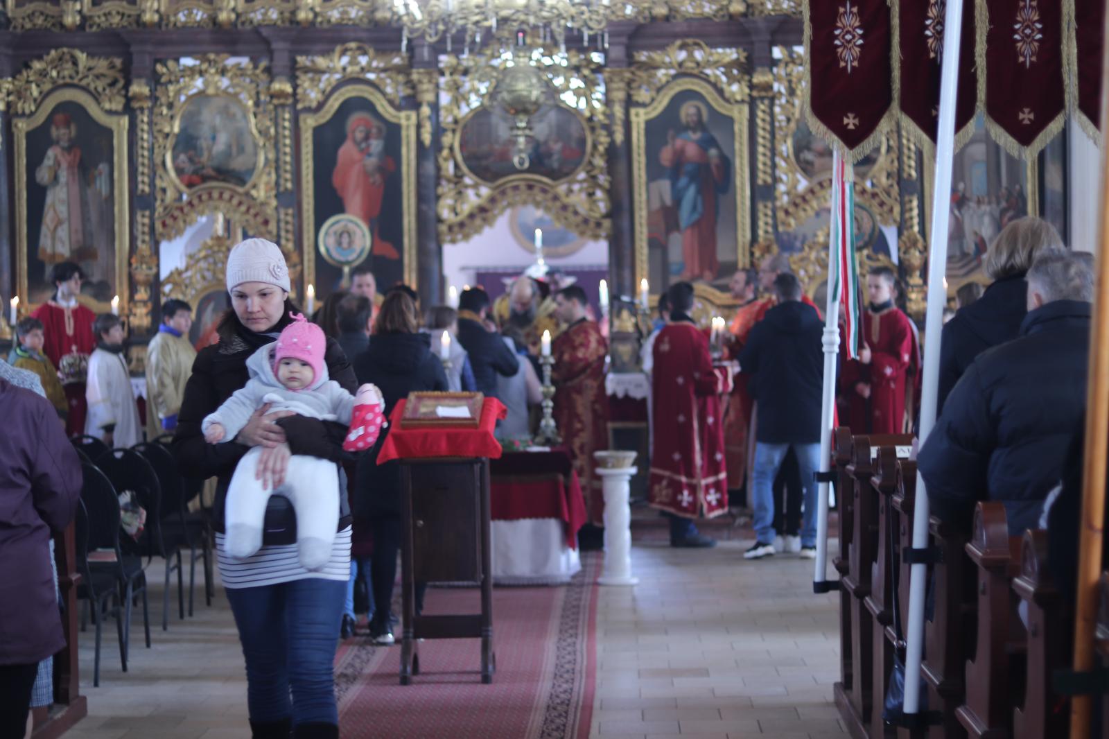 Szentbeszédében Fülöp atya a nagyböjt során megtett lelki utazásról, és az egyház ebben nyújtott segítségéről beszélt. Nagyböjt minden vasárnapján egy-egy kapaszkodót ad az anyaszentegyház, hogy támaszt nyújtson böjti megpróbáltatásainkban. Nagyböjt felénél járva kereszthódoló vasárnapot ünnepeljük, amikor is a templom közepére kihelyezett kereszt látványával, érintésével, csókolásával meríthetünk erőt a böjtöléshez. Noha a kereszt első ránézésre egy rideg, száraz kivégzőeszköz, ha hittel tekintünk rá, észrevesszük rajta a legcsodálatosabb gyümölcsöt, aki értünk tanúsított odaadó szeretetből nem tud leszállni a keresztről. Csak hitünkön múlik, hogy egy darab fát, vagy az élet forrását látjuk benne.