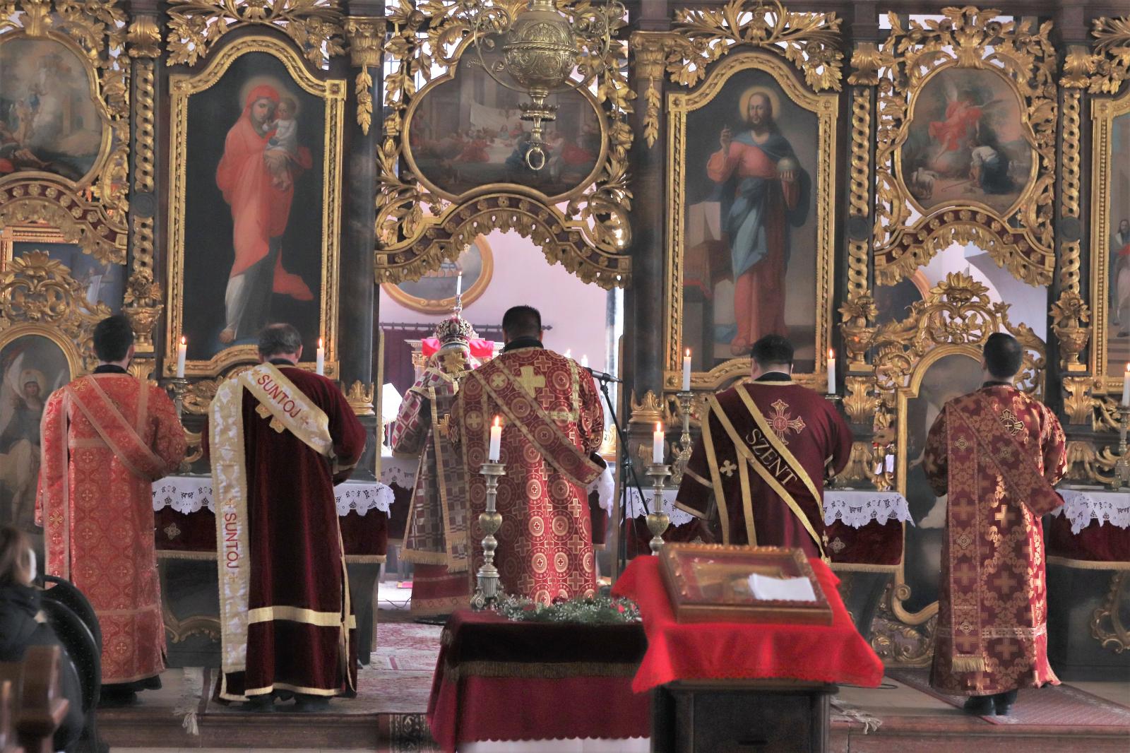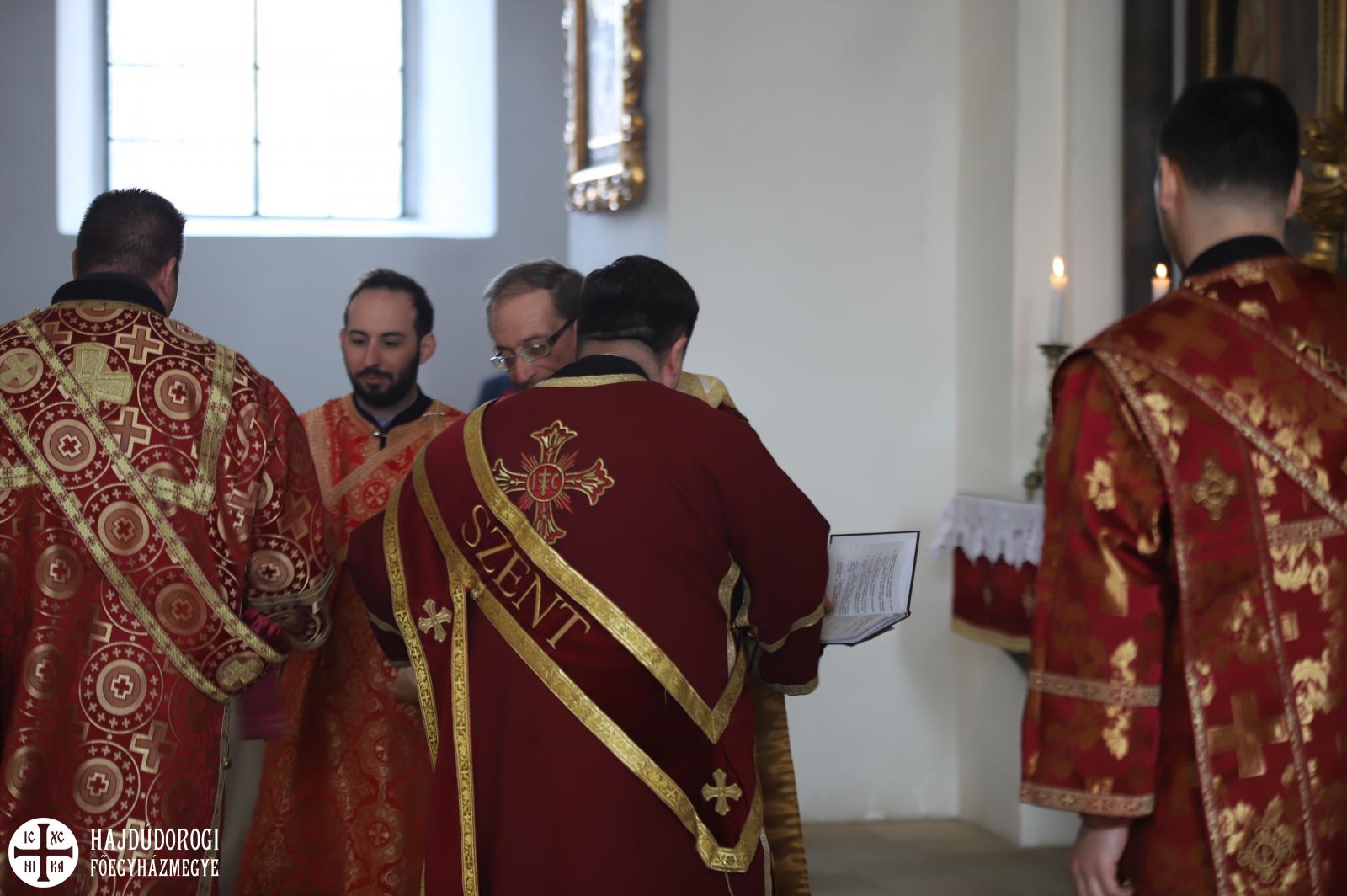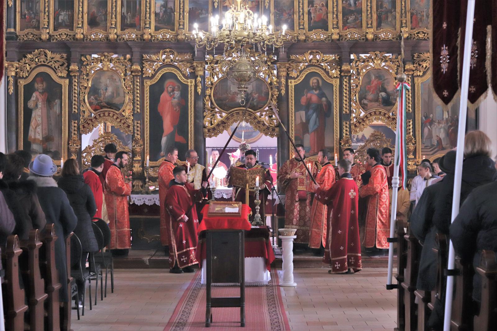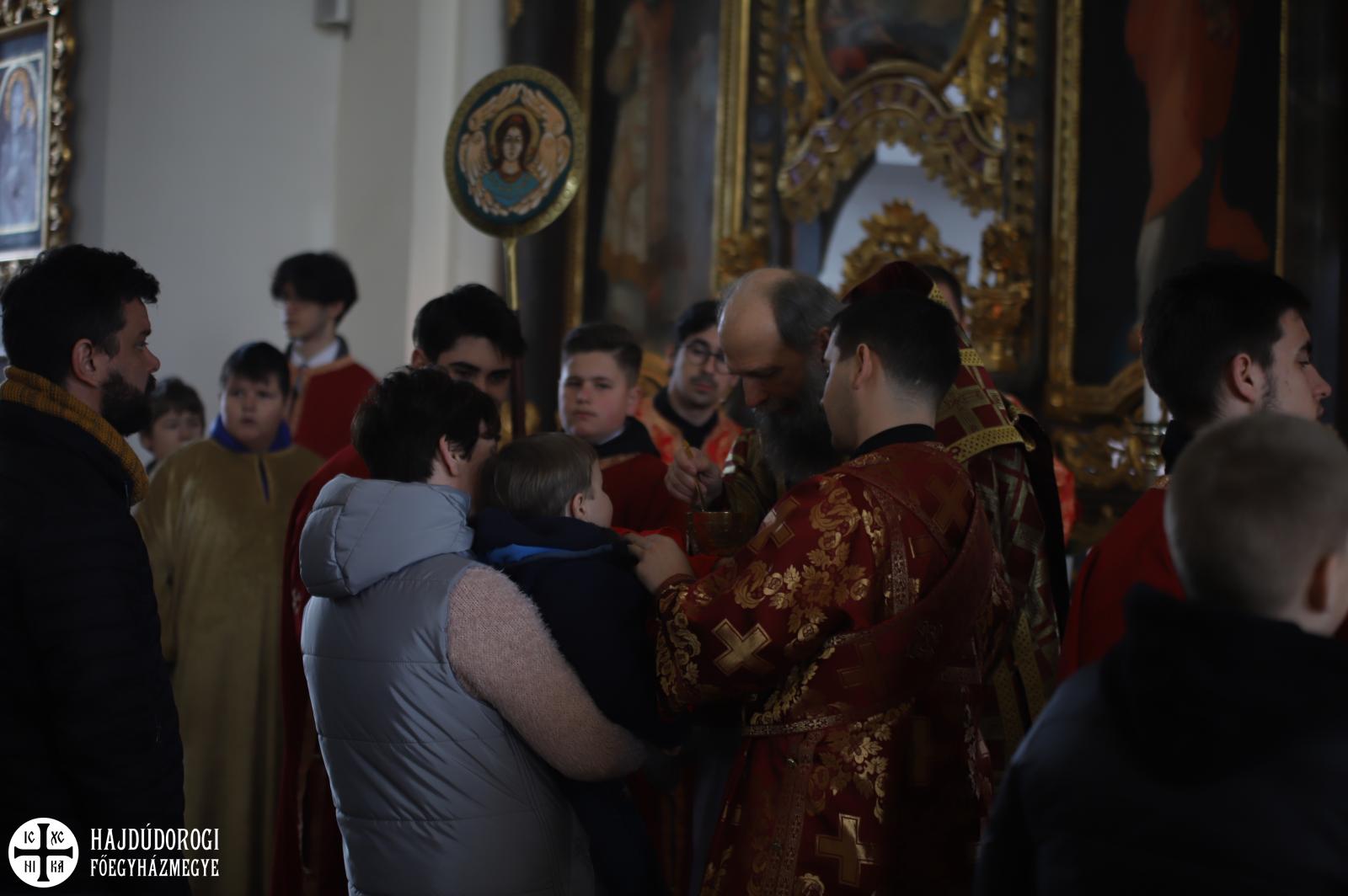 Szentbeszédében Fülöp atya a nagyböjt során megtett lelki utazásról, és az egyház ebben nyújtott segítségéről beszélt. Nagyböjt minden vasárnapján egy-egy kapaszkodót ad az anyaszentegyház, hogy támaszt nyújtson böjti megpróbáltatásainkban. Nagyböjt felénél járva kereszthódoló vasárnapot ünnepeljük, amikor is a templom közepére kihelyezett kereszt látványával, érintésével, csókolásával meríthetünk erőt a böjtöléshez. Noha a kereszt első ránézésre egy rideg, száraz kivégzőeszköz, ha hittel tekintünk rá, észrevesszük rajta a legcsodálatosabb gyümölcsöt, aki értünk tanúsított odaadó szeretetből nem tud leszállni a keresztről. Csak hitünkön múlik, hogy egy darab fát, vagy az élet forrását látjuk benne.
