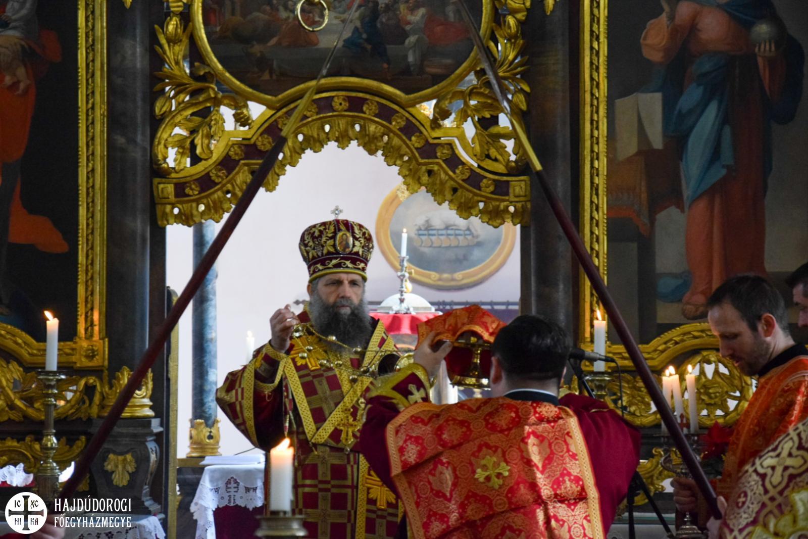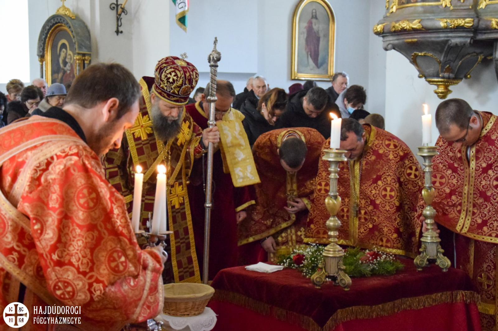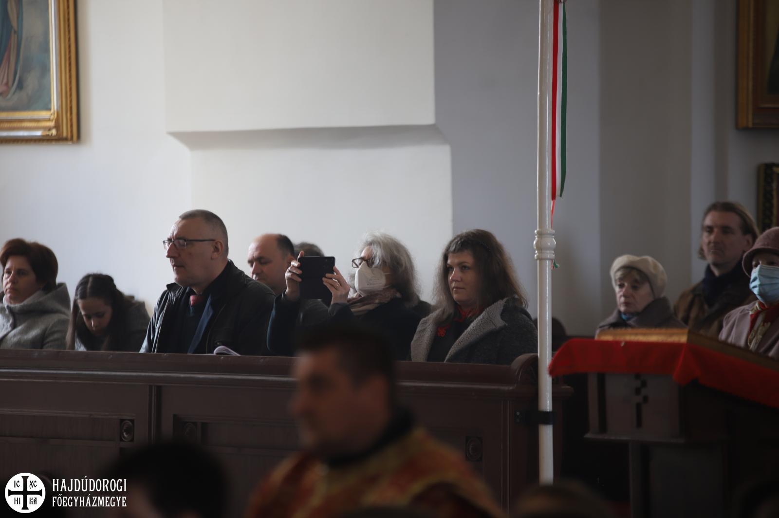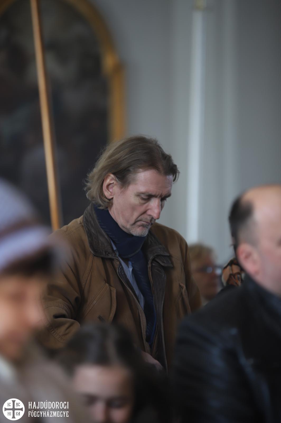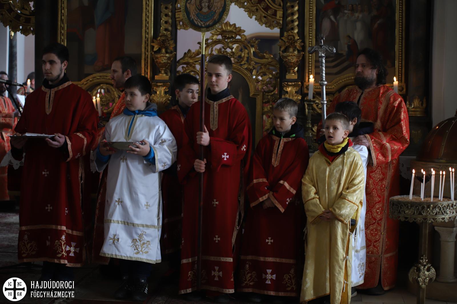 Szentbeszédében Fülöp atya a nagyböjt során megtett lelki utazásról, és az egyház ebben nyújtott segítségéről beszélt. Nagyböjt minden vasárnapján egy-egy kapaszkodót ad az anyaszentegyház, hogy támaszt nyújtson böjti megpróbáltatásainkban. Nagyböjt felénél járva kereszthódoló vasárnapot ünnepeljük, amikor is a templom közepére kihelyezett kereszt látványával, érintésével, csókolásával meríthetünk erőt a böjtöléshez. Noha a kereszt első ránézésre egy rideg, száraz kivégzőeszköz, ha hittel tekintünk rá, észrevesszük rajta a legcsodálatosabb gyümölcsöt, aki értünk tanúsított odaadó szeretetből nem tud leszállni a keresztről. Csak hitünkön múlik, hogy egy darab fát, vagy az élet forrását látjuk benne.