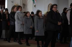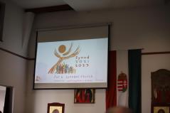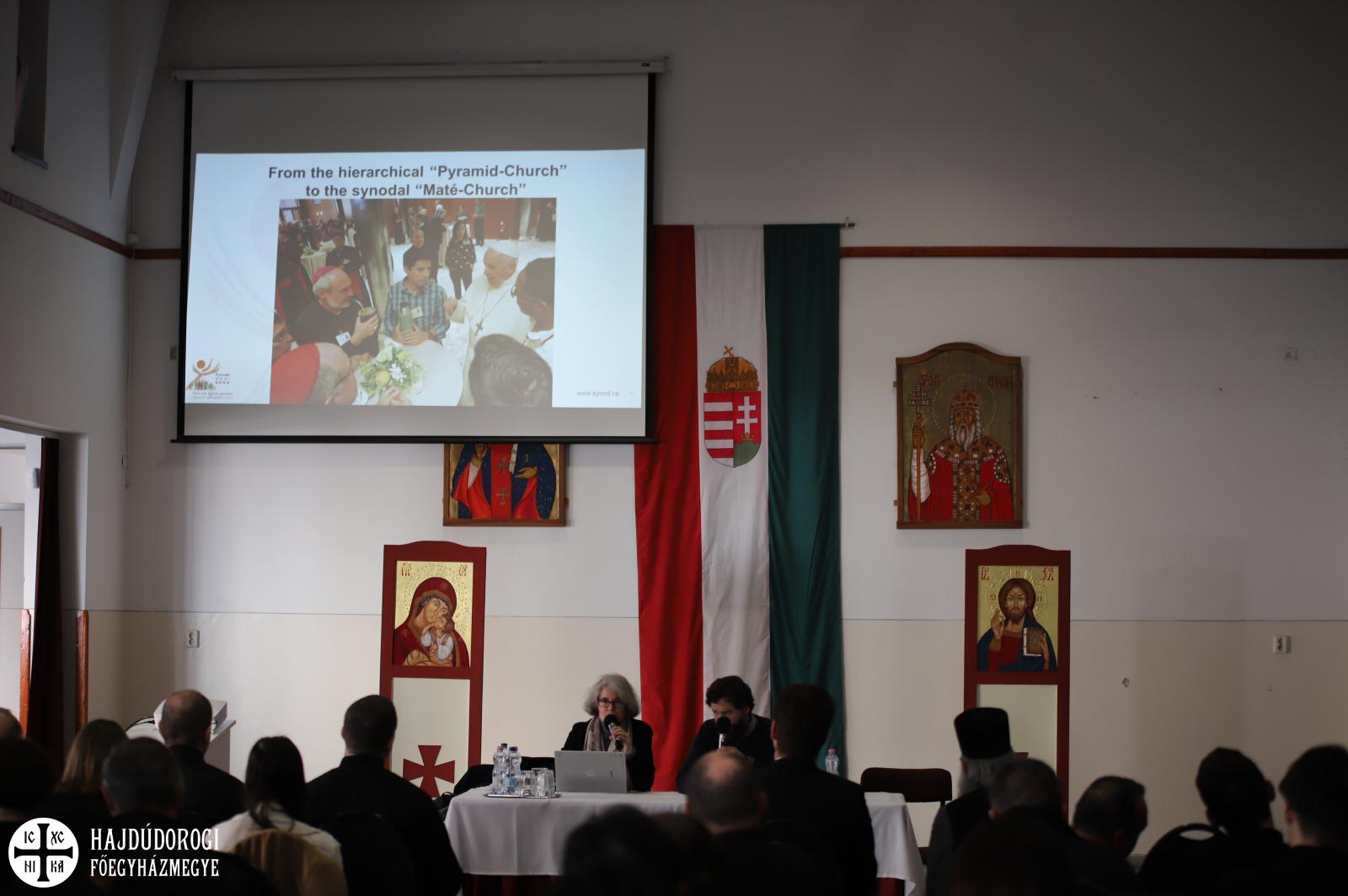 A Szent Liturgián jelen voltak mindhárom egyházmegyénk szinódusi csoportjainak képviselői – idősek, fiatalok, férfiak, nők – akik közös ebéd után Nathalie Becquart nővér előadásán vettek részt a Szent Bazil Oktatási Központ aulájában. Az angol nyelvű előadást tolmácsolva hallgatták a résztvevők. De nem csak hallgatták, hanem aktív részesei is voltak, hiszen – ahogy Natalie nővér mondta – a szinódus maga olyan folyamat, mely az egyház szinodalitásáról szól, minden egyes szereplő aktív részvételével.
