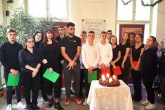 Papp Edit: Céljuk természetesen a győzelem volt. Az egyik órán megnéztük a vetélkedő felületét, majd órák végén mindig adtam egy kis időt a kitöltéshez. Örültem, hogy óraközi szünetben és esténként, hétvégente is foglalkoztak a vetélkedővel. Nagyon elkapta őket a lendület. Amikor megtudták, hogy bejutottak a középdöntőbe, igen nagy lelkesedéssel várták. Végig a teljes győzelem lebegett a szemük előtt, bár próbáltunk kis lépésekben (is) gondolkodni. Amikor megkaptuk az e-mailt, hogy bejutott az osztály a nagydöntőbe, mérhetetlen büszkeség és izgalom lett úrrá rajtuk. Nagyon készültek a döntőre. A 20 perces előadáshoz remek ötletük is volt. Sajnálják, hogy nem valósíthatták meg a kialakult helyzet miatt. A nagydöntő előzetes feladataihoz sokat ötleteltünk. Végül a tavaszi szünetük jó részét az ötleteik megvalósítására fordították. Végig igyekeztem erősíteni bennük azt, hogy igaz, győzni jöttünk, de már az is nagy szó, hogy egy ilyen kis iskolából, mint a miénk, sikerült egy osztálynak egy ilyen vetélkedő nagydöntőjébe jutnia. A kollégáim nevében is mondhatom, hogy nagyon büszkék vagyunk az osztályra. Arra pedig külön büszkék vagyunk, főleg én osztályfőnökként, hogy a nagydöntőn a felháborító kommentelésben nem vettek részt. Bár őszintén szólva, az osztályomat ismerve, nem is vártam tőlük másfajta hozzáállást.