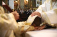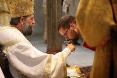 „Sokszor megfeledkezünk a Lélek munkájáról, pedig, ha Jézusra tekintünk, ha a csodáit látjuk és csodálatos tanítását halljuk, mindig észre kell vennünk a Lélek működését. Mert Krisztus is az Atya küldötteként mindent a Lélekben vitt végbe. Ma Mártonra is leszáll a Lélek, hogy beteljesíthesse hivatását, eltöltse a Lélek” – szólt a szentelendőről is prédikációjában érsek-metropolita atya. Majd azzal folytatta, hogy akiket a Lélek vezet, azok az Isten fiai. Ők töltik be az Isten akaratát. „Márton nem félt attól az úttól, ami elvezette a mai naphoz, a fölkészülés útjához, de ma egy olyan lépéshez érkezett, amit a saját erejéből, saját lelkesedéséből, elszántságából nem tudna megtenni.