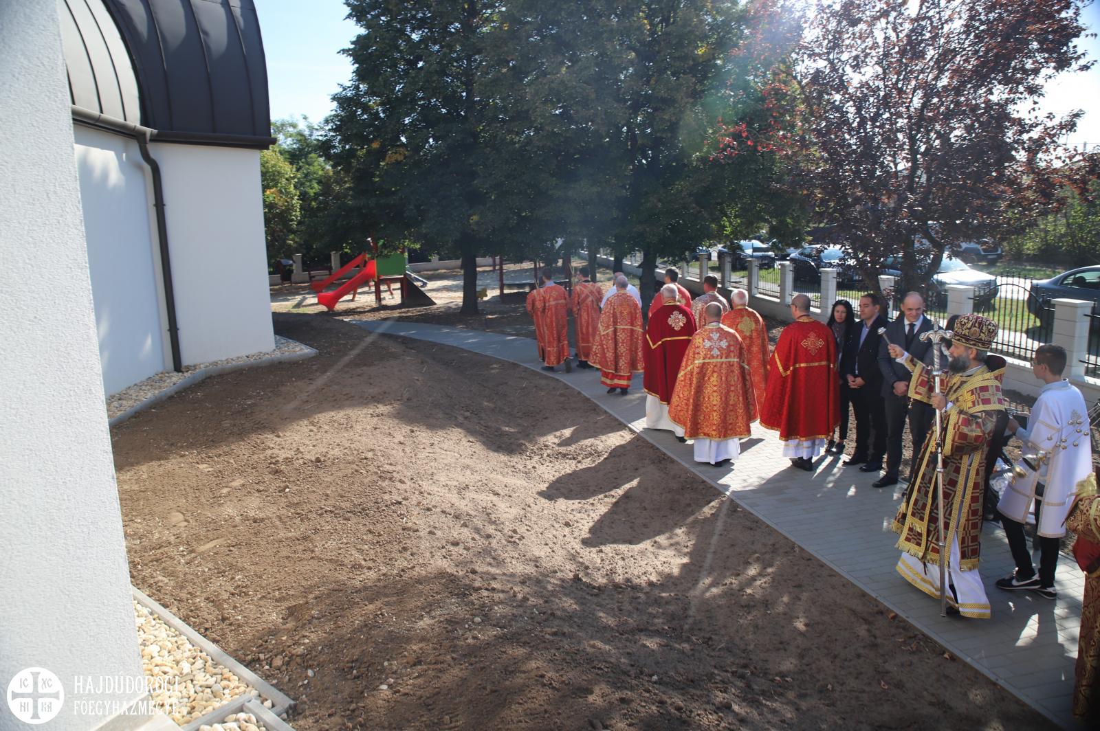 Az ünnepi Szent Liturgiát megelőzően áldotta meg Kocsis Fülöp érsek-metropolita atya az épületet, melynek gazdáját Urgyán Antal parókus atyát is komoly elismerésben részesítette. A lelki vezető és családja 2010 óta teljesít szolgálatot a településen és eddig elvégzett munkájáért papi mellkereszt viselésére hatalmazta fel a főpásztor.