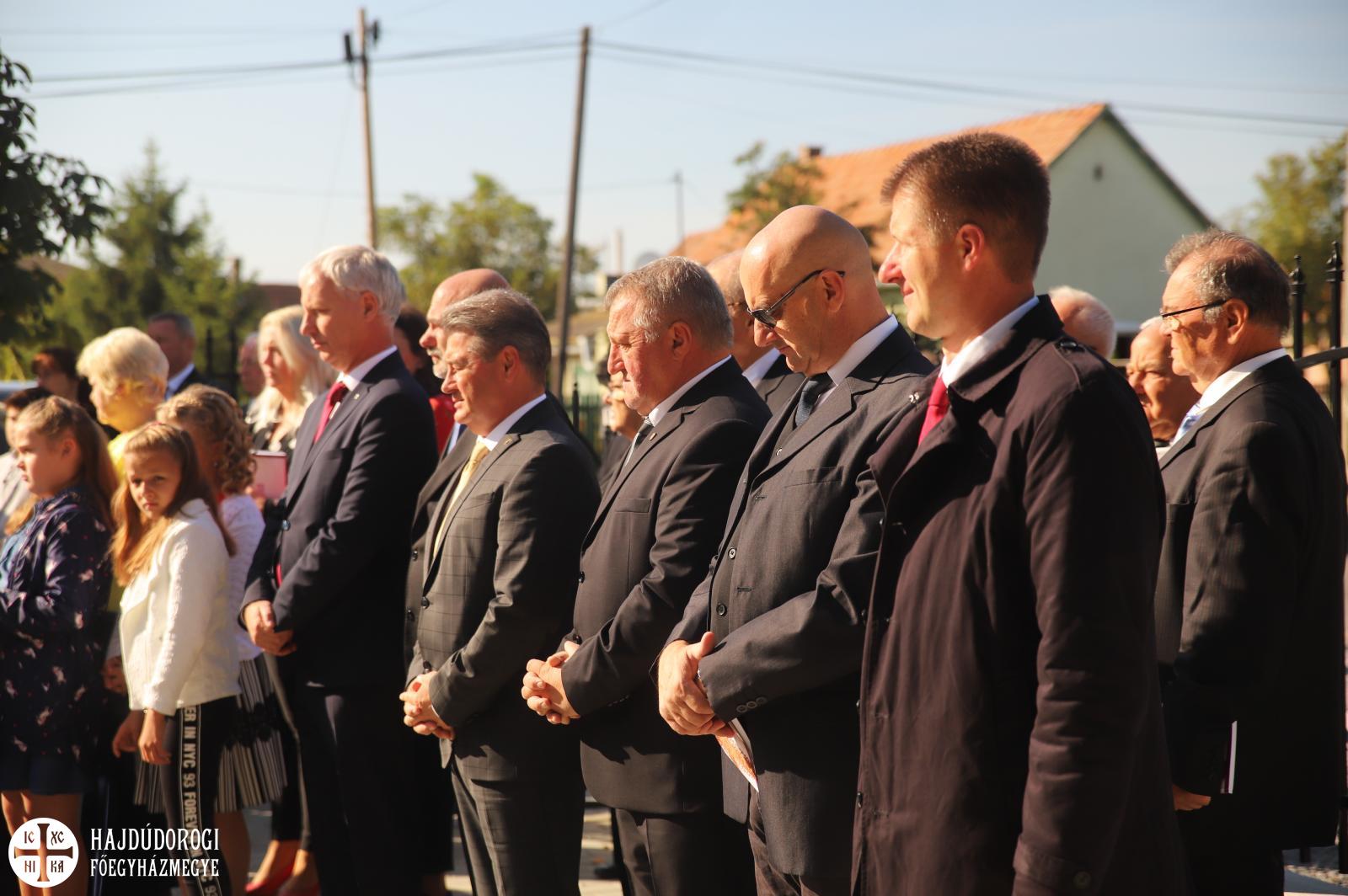 Az ünnepi szertartás végén Soltész Miklós, a Miniszterelnökség egyházi és nemzetiségi kapcsolatokért felelős államtitkára szólalt fel. Kiemelte: több mint kétezer éves kereszténységünk és több mint ezeréves magyar kereszténységünk valóban egyik fontos jele, üzenete és összetartó ereje a kereszt. E jelkép – tette hozzá – Antal parókus atya számára mostantól az évtizedek küzdelmeire emlékeztet, ugyanakkor a folytatásra is. Összefogás eredményeként megújították a templomot, a közösségi házát és a kereszténység gyakorlati tanítását is példaértékűen végzik.