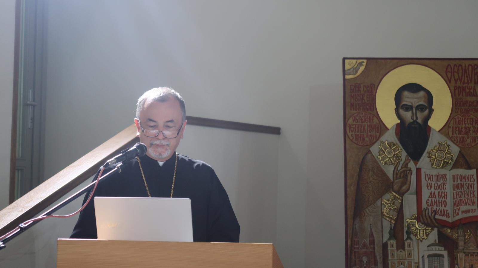 Felszólalt Dobos András, a Görögkatolikus Papnevelő Intézet rektora is. Izgalmas előadásában nemcsak az egyházmegyét, hanem az egész térséget érintő liturgikus kérdésekről beszélt: Kijevtől kezdve Ungváron és az egri püspöki székhelyen át Bécsig és Rómáig.
