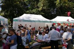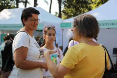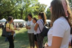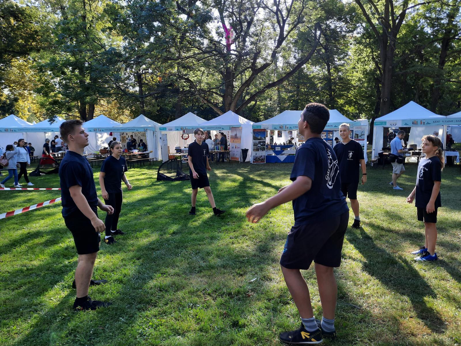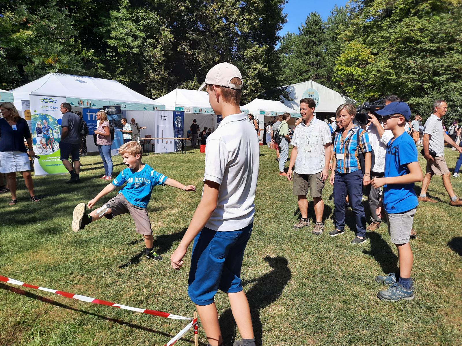 Az idősebbeket a dunaújvárosi Gárdonyi Géza Görögkatolikus Általános Iskolából érkezett lábtoll-labda csapat nyűgözte le. A ritka és látványos ügyességi sport megállított mindenkit a sátrunknál. A kedves invitálásnak aztán nem álltak ellent és sokan kipróbálták a játékot. Mindeközben a nézelődők között a budapesti Szent Anna és a debreceni Szent László gimnázium és technikum, és az Oktatási Iroda munkatársai osztották intézményeink szórólapjait, és beszélgettek – gyakran németül, angolul – az érdeklődőkkel középiskoláink kínálatáról, arculatáról.