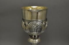 Ferenc pápa örömmel fogadta a Püspöki Konferencia ajándékát, egy ezüstből készült kelyhet és paténát. A kehely Tau kereszttel (utalva Assisi Szent Ferencre, a Szentatya választottjára), és az Eucharisztiában köztünk lévő Krisztus (Isten Báránya) szimbólumával díszített, aljába a jeles alkalomra emlékeztető latin szöveg került bevésésre. A paténa színoldalára a Szentatya címerábrázolása került. A kehely készítője Szabó János ötvös, fémrestaurátor, aki Ozsvári Csaba ötvösművésszel együtt dolgozott a Missziós kereszt elkészítésén, amely az 52. Nemzetközi Eucharisztikus Kongresszus missziós szimbóluma.