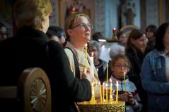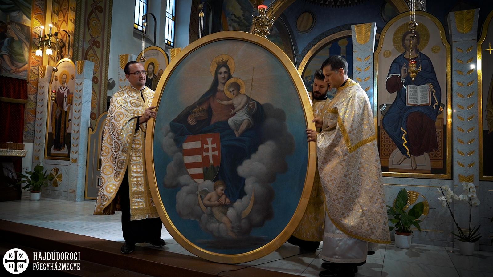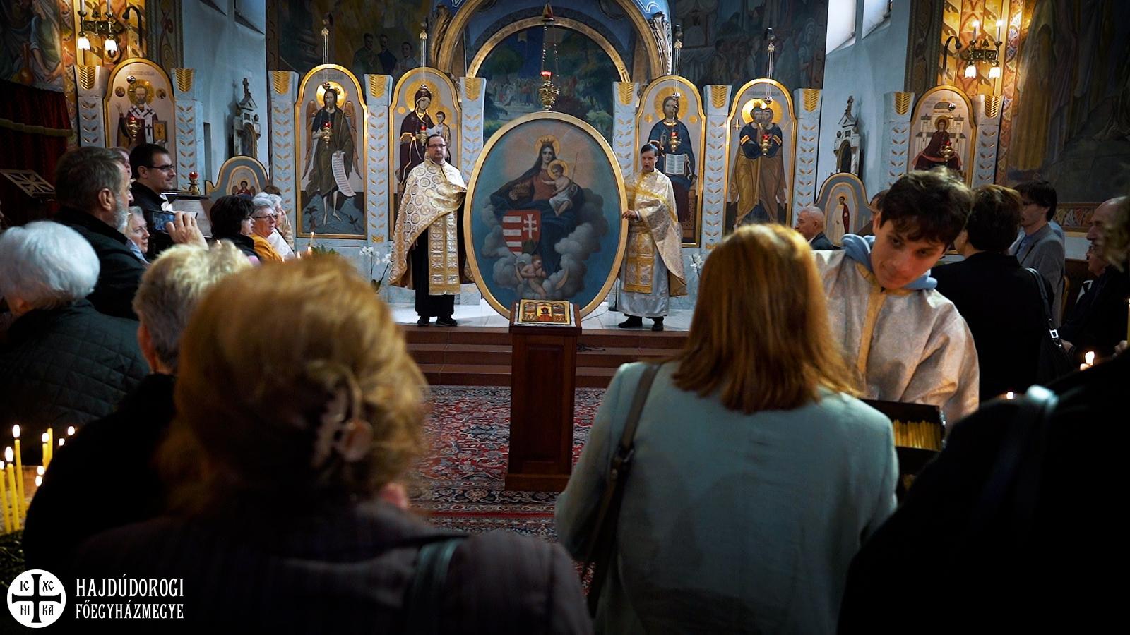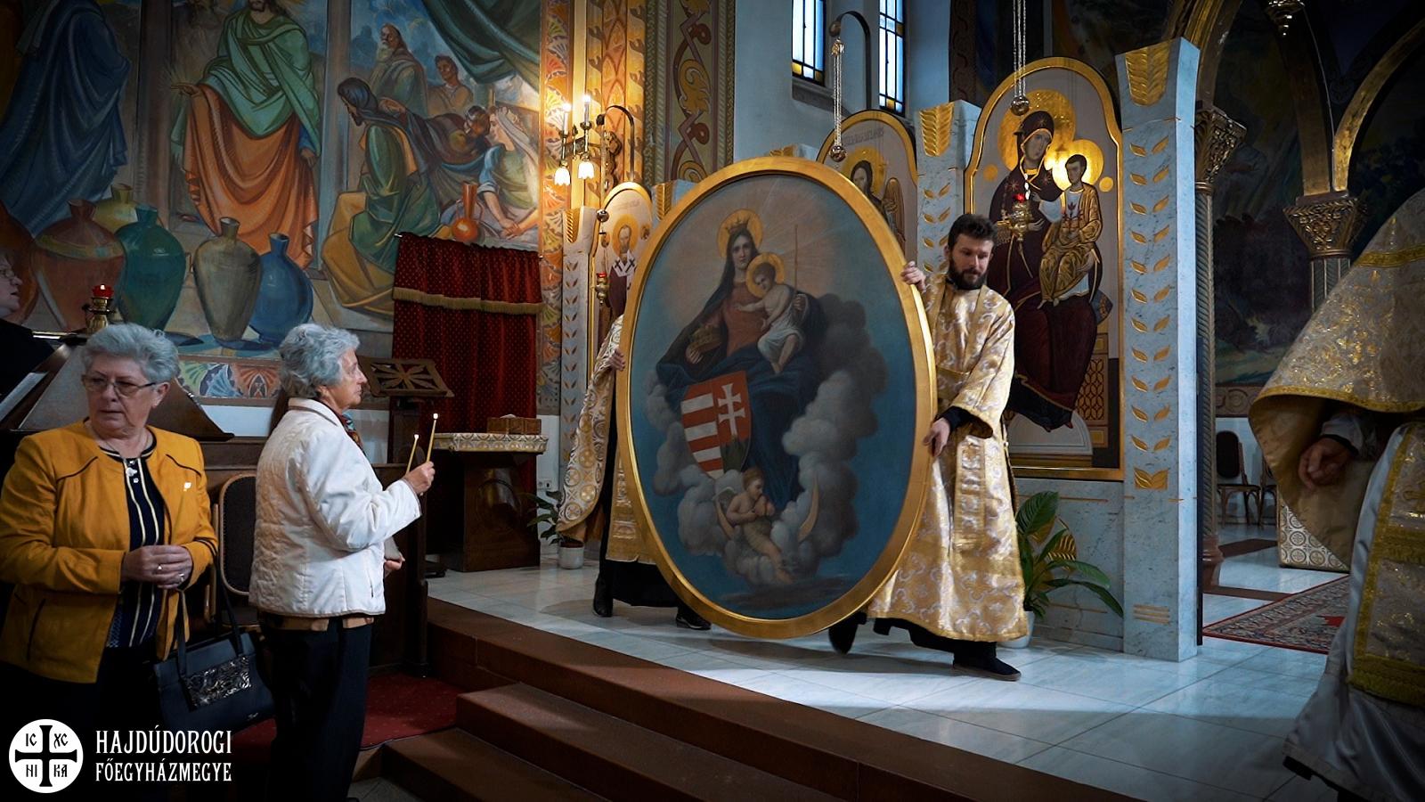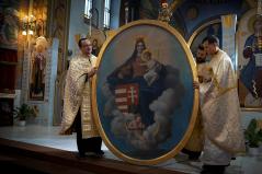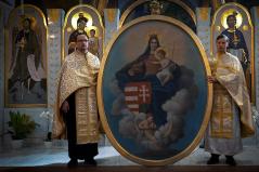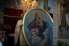 Már ekkor is csak meghatódva sikerült folytatnunk a Szent Liturgiát. Érzelmi viharok viszont igazán csak a végén töltötték el sokunk lelkét, amikor az oltárképet az ambonra a hívek közé hozva – most olyan közelről látva, ahogy sokan közülünk még soha – énekelhettük együtt: „A Szűz ma jelen van az Úr hajlékában”, „Siessünk buzgón az Istenszülőhöz” és pártfogását kérelmezve mindannyiunkra és az előttünk álló viszontagságokra a „Boldogasszony Anyánk” kezdetű himnuszunkat. Azt hiszem, a jelenlévők közül azon kevesek is, akiknek esetleg száraz maradt volna a szeme, átérezte ennek a pillanatnak a történelmi jelentőségét és nagyszerűségét.
