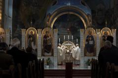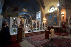 Végezetül önmagunkat és hazánkat az Istenszülő pártfogásába ajánlva tudtuk, meg, hogy hétfőn még utoljára végezhetünk szertartásokat a főszékesegyházban, s kedden már az új helyeken: reggel az Érseki Hivatal, este pedig a Svetits Gimnázium kápolnájában tartjuk majd a megszokott rend szerint egyházközségünk liturgiáit.