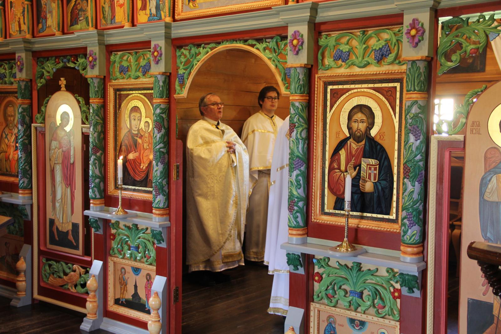 A Szent Liturgiában a település két legidősebb görögkatolikus papja is szolgált: Ihnáth János atya vezette a szertartást, Erdélyi József atya pedig 93 éves korát meghazudtoló lelkesedéssel beszélt a prédikációban arról, hogy 2000 év óta él a kereszténység, és ez csakis úgy lehetséges, ha ma is ugyanazzal az örömmel tesszük a dolgunkat, mint amilyennel a mennybemenetel után a tanítványok hirdették az Evangéliumot. Ugyanis ezt maga Jézus Krisztus adja: „…örömöt szereztél tanítványaidnak…” (tropárból)