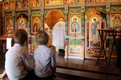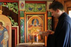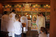 Ugyancsak alapkép az Urunk mennybemenetelét ábrázoló ikon. Ez a kápolna címünnepe. Más években is nagyon családias volt a fatemplom búcsúja. Idén meg aztán különösen, hisz nehéz ezen a piciny helyen az egészségügyi előírásoknak megfelelő, fegyelmezett magatartással jelen lenni. Áldozócsütörtökön ezért szűk körben ünnepeltek a szerzetesek. Rajtuk kívül, Adeus Illés atya meghívására, csak a Máriapócson szolgáló atyák és családtagjaik voltak jelen, s a bazilita harmadrendet is csupán néhányan képviselték.