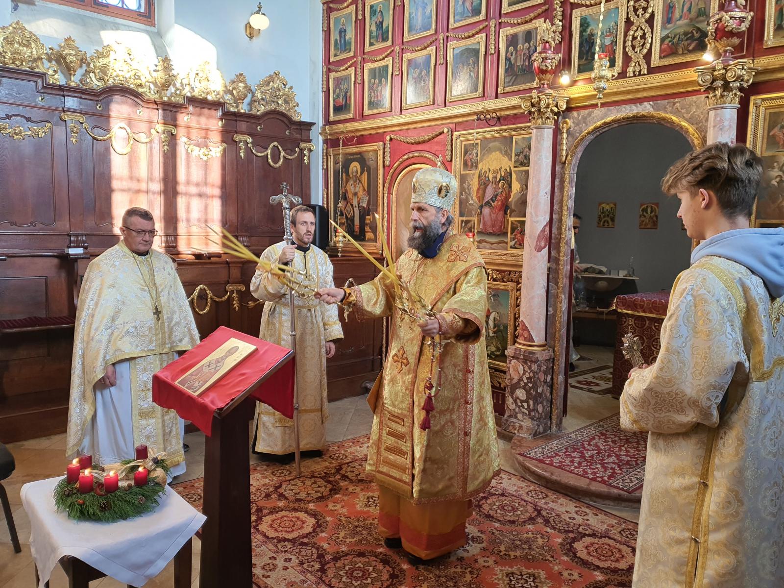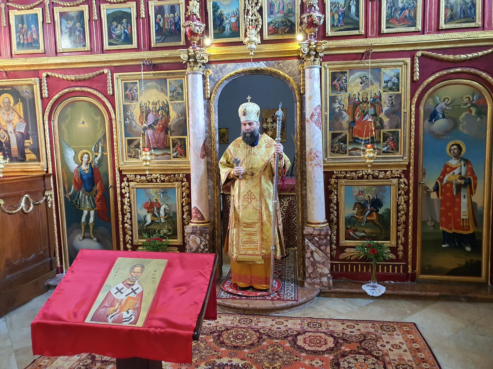 Az idei templombúcsúnkat a koronavírus-járvány miatt nem tudtuk a szokásos módon megünnepelni, ennek ellenére mégis meghitt és méltó körülmények között imádkozhattunk, kérhettük védőszentünk közbenjárását templomunkban. A napot reggel utrenyével kezdtük, majd Szent Liturgiával folytattuk, amin Istennek hála szép számmal részt tudtunk venni a körülmények ellenére is. Fülöp metropolita atya prédikációjában kiemelte a karácsonyt megelőző böjti időszakhoz kapcsolódóan a bűnbánat, a megbocsájtás és az Isten iránti szeretetünk fontosságát. Az ünnepség végén egy kis ajándékkal kedveskedett gyermekeinknek.