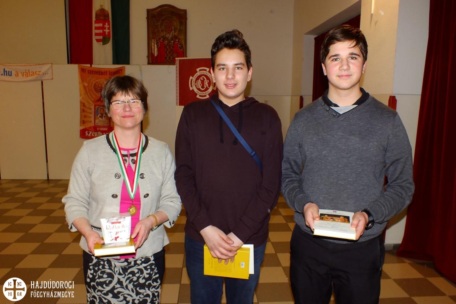 2. Nyíracsádi Parókia (Fazekas Anita, Papp Dávid, Ternován Szabolcs) Felkészítő: Tóth Elekné 125 pont