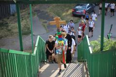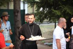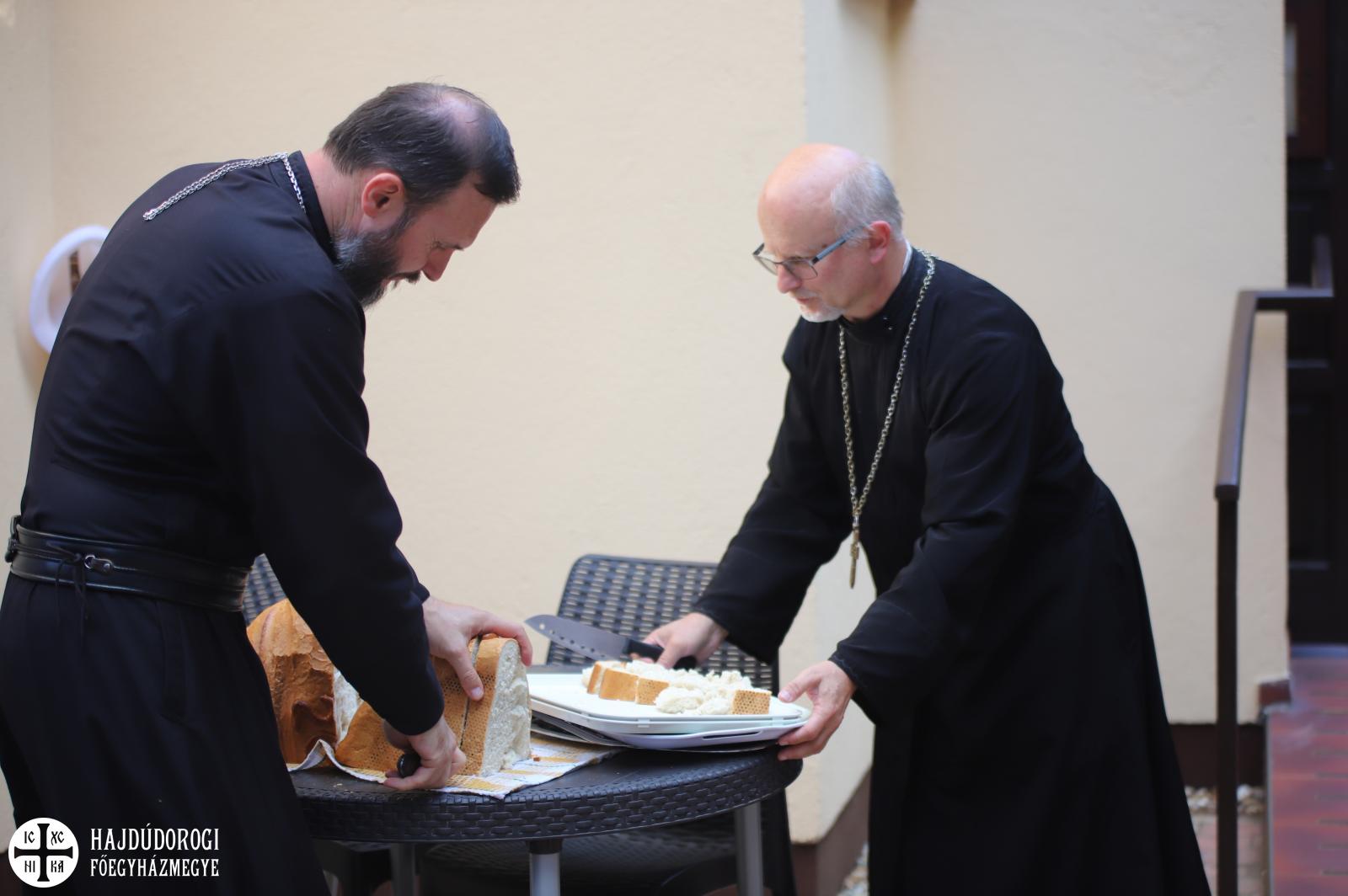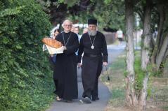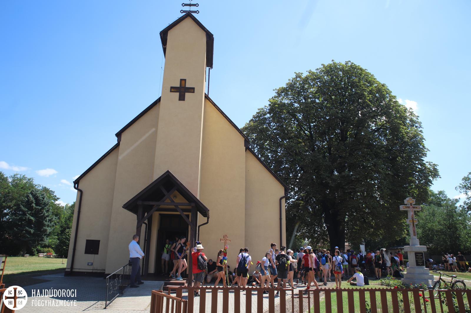 A templomban László atya köszöntötte a zarándokokat, bemutatta a Szent Kereszt felmagasztalásának ünnepére keresztelt templomban látható falképeket, ikonokat, majd a templomkertben megvendégelte az elcsigázott vándorokat; Ábel püspök atya által megszegett kenyérből is jutott mindenkinek.