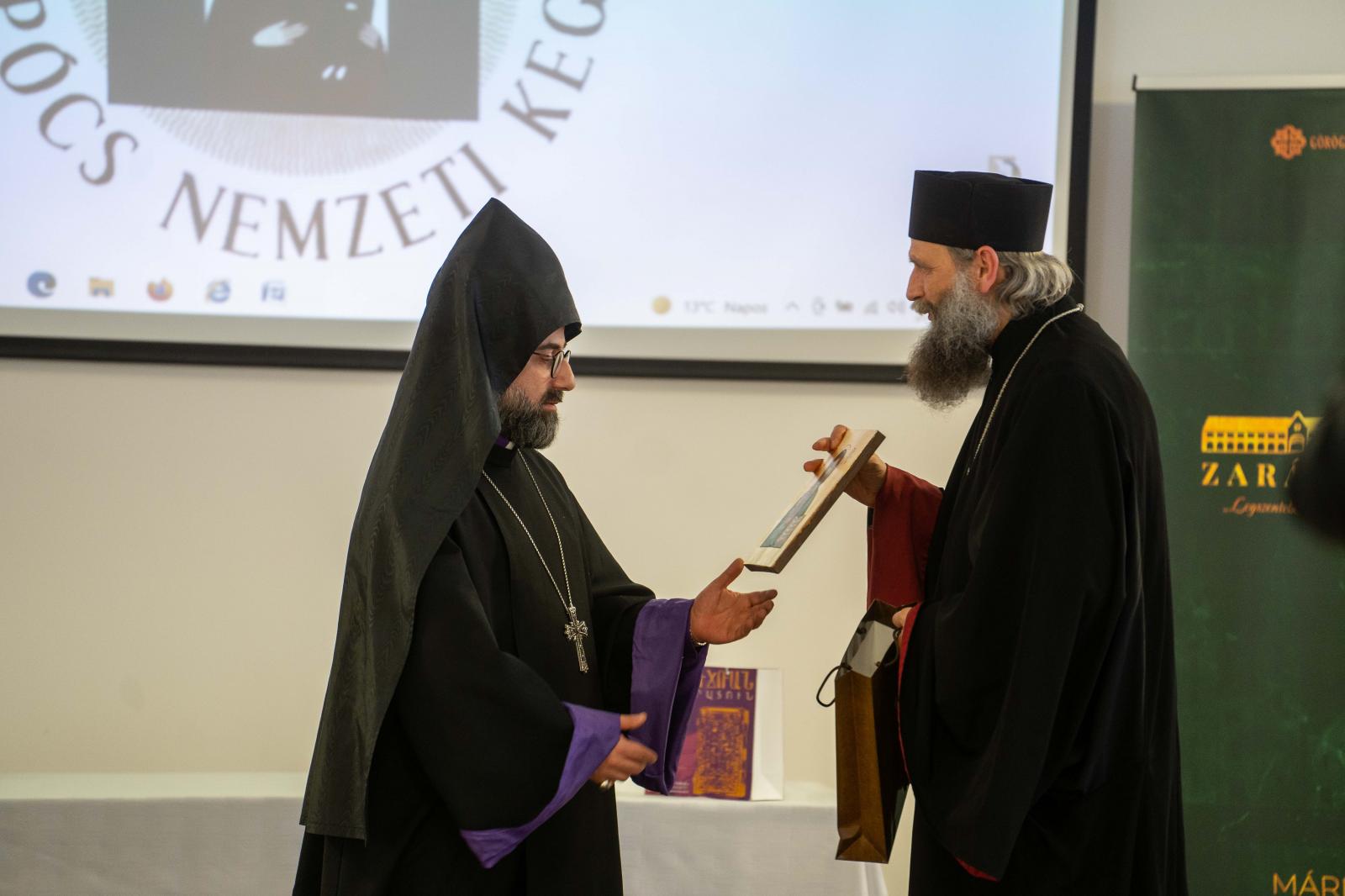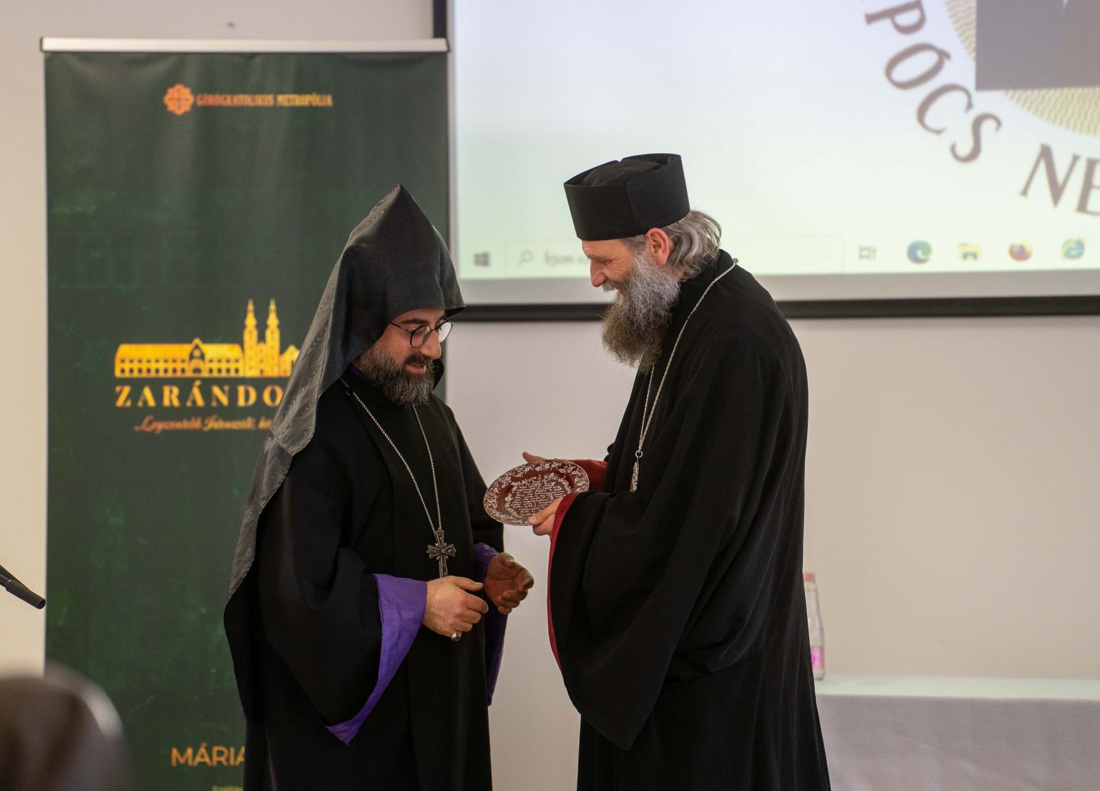 A konferenciára meghívást kapott Armash Nalbandian, a Damaszkuszi Örmény Apostoli Egyházmegye püspöke, előadását angol nyelven, fordításban kísérhették figyelemmel a jelenlévők. Az előadás hosszabb verzióját minden résztvevő a kezébe kapta, amelyből egy tágabb történelmi áttekintésen keresztül ismerhették meg a térség jelenlegi helyzetét. Armash püspök a legfontosabb kérdéseket pontokba szedve tárta a hallgatóság elé. Ezek szerint (1) a keresztények jelenléte a Közel-Keleten nagyon fontos a radikalizálódás megfékezése érdekében, (2) a vallásközi párbeszédnek közös utat kell találni a muszlimokkal, (3) a csöndes muszlim többséget meg kell győzni, hogy ítéljék el az iszlám nevében elkövetett atrocitásokat, (4) a közel-keleti egyházaknak el kell mélyíteni egységüket, szélesíteni kell együttműködésüket, (5) a szíriai egyházaknak építkezésre (helyreállításra és újjáépítésre) van szükségük az oktatás, a közösségi élet és a humanitárius segítségnyújtás terén, és (6) az egyházaknak meg kell erősödniük a Közel-Keleten és Afrika országaiban.