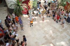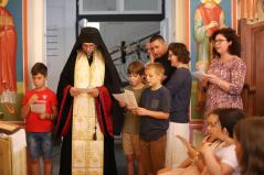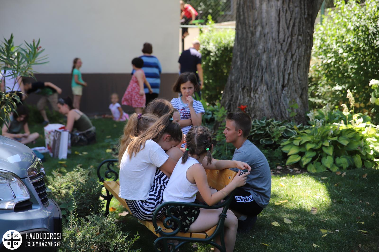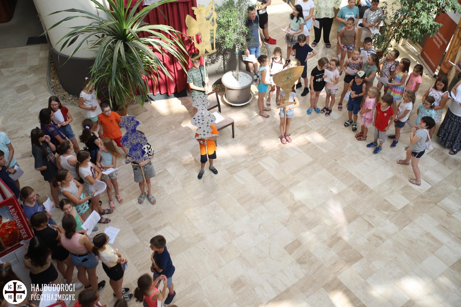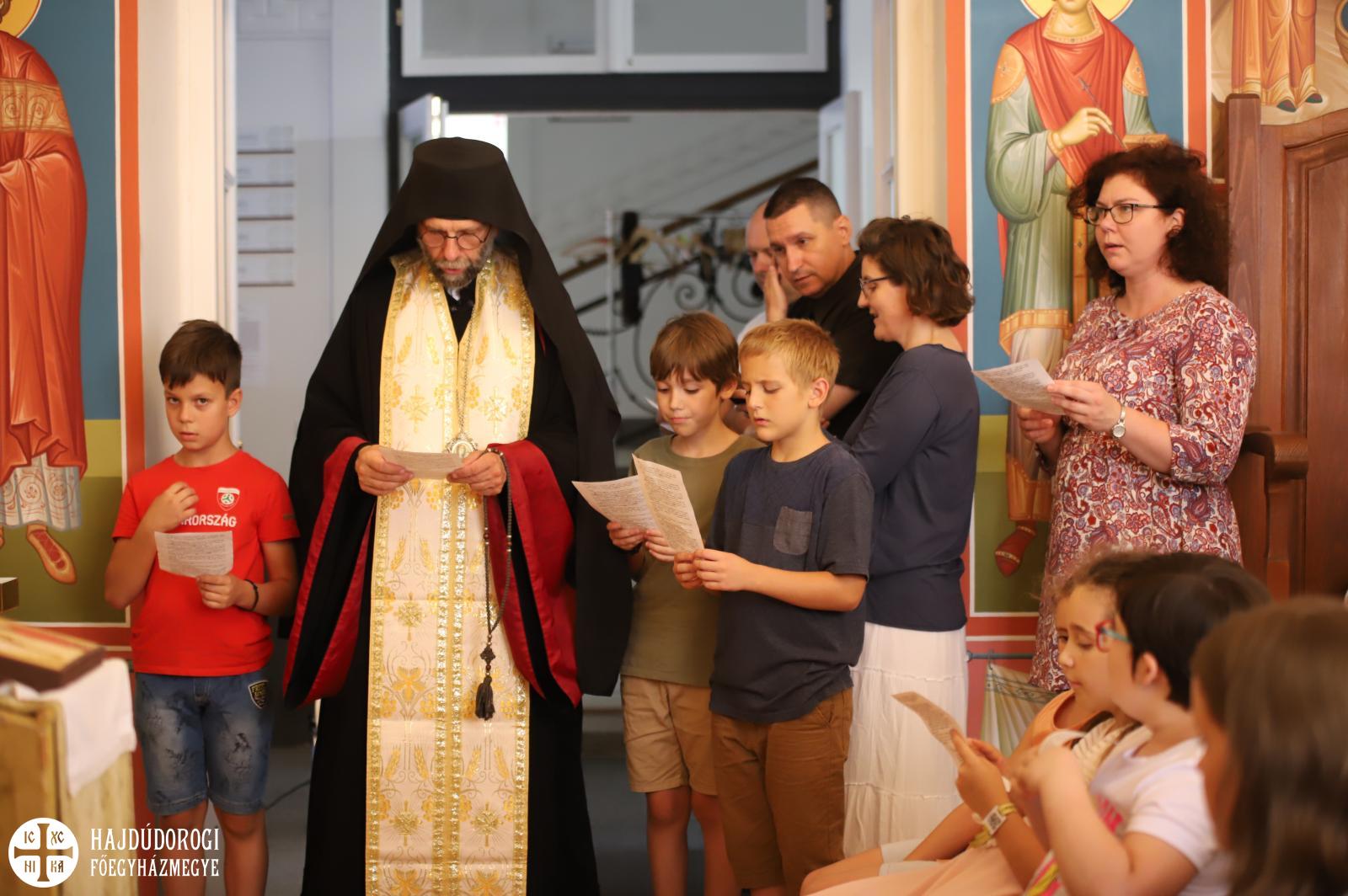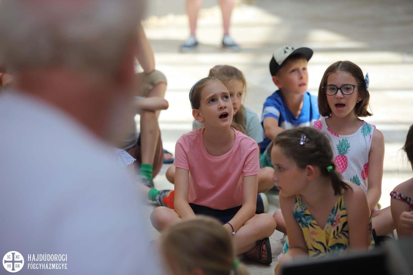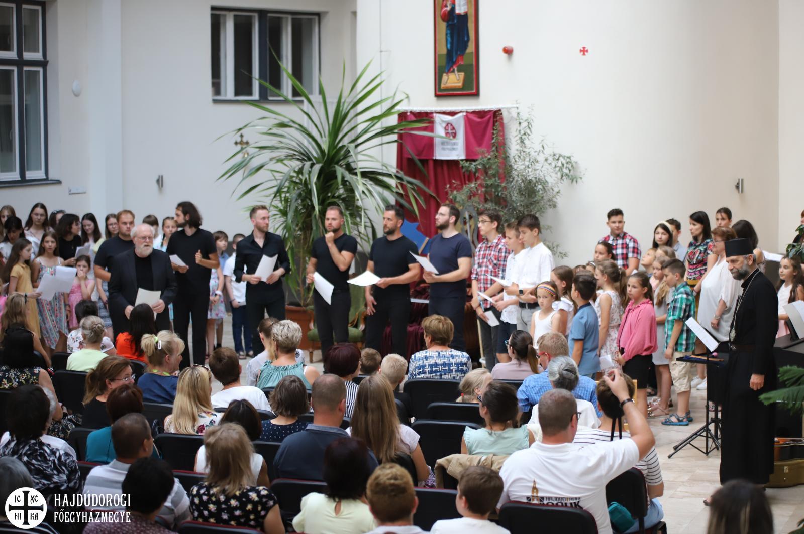 Az egyébként csendes hétköznapok pillanatok alatt felbolydultak a Metropolitai Hivatalban, amikor a liturgikusének-tábor lakói birtokukba vették az épületet. Ki valamilyen hangszeren gyakorolt, ki énekelt, de bárhogyan is foglalták le magukat a gyerekek egy biztosan érzékelhető volt: az a fajta felszabadultság, ami kizárólag nyáron éri utol a kicsiket.