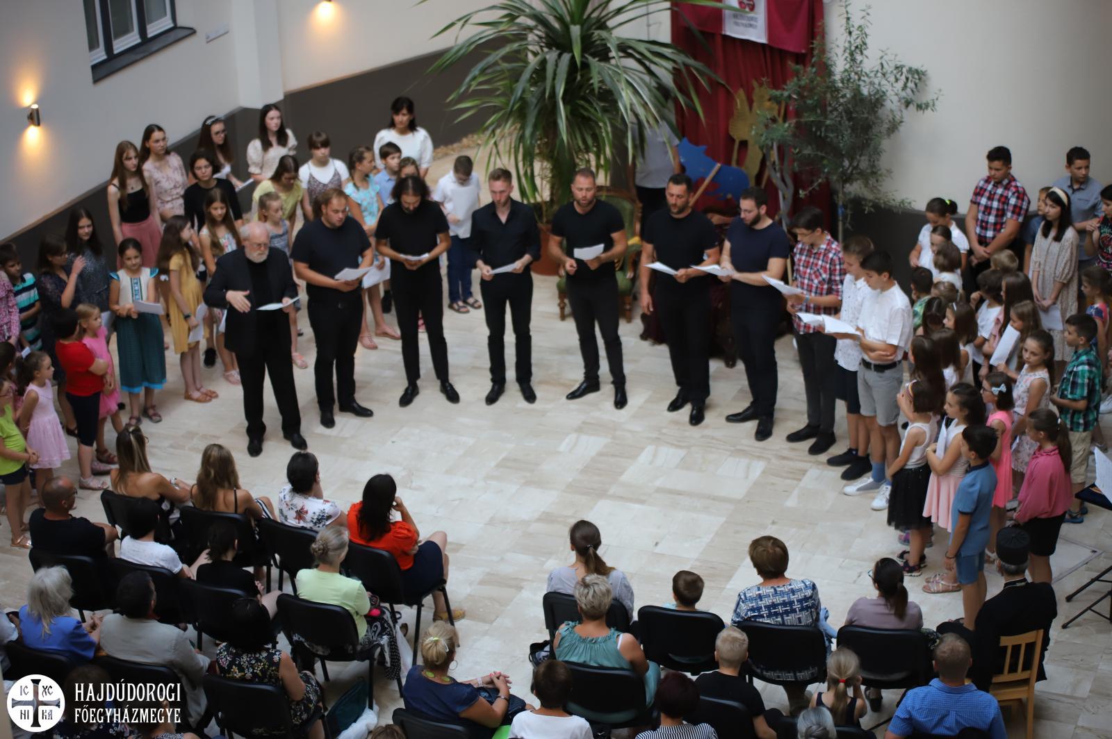 A gyerekek, a csoportvezetőkkel és a Szent Efrém férfikarral közösen adták elő a művet. Mint mondták először félve álltak megtanulásához, de szerintük nagyon jól sikerült, élvezték, s az alapból színes éneklést továbbszínesítette ez a program.