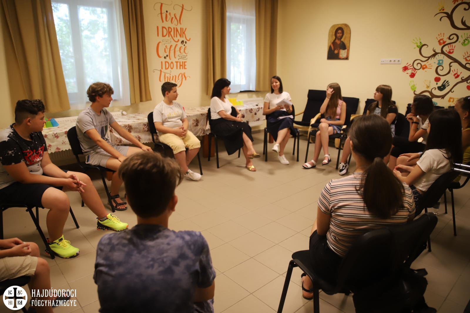 Öt korcsoportban zajlott a tanítás, a hivatal épülete mellett a Szent Miklós Szolgálóház adott helyet idén is az oktatásnak. Orosz-Tokár Edina és Kökényessy Zsófia a kis kamaszokkal töltötte el ezt a hetet, és öröm volt látniuk, hogy évről-évre többen vannak. Ahogy mondták kifejezetten „ragadós a példa, elmondják a gyerekek egymásnak, hogy milyen jó is ez a hely, így kap kedvet olyan is a részvételhez, aki még nem járt itt.