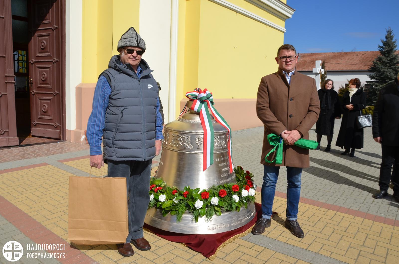Nagy Antal János világi elnökünk is köszöntötte a megjelenteket és mindazokat, akik adományaikkal hozzájárultak, segítették a harang megújulását. Isten kegyelméből ő a harangöntés folyamatát végig követhette s jelen volt magának a harangnak az öntésén László atyával és néhány más egyházközségi taggal együtt. Elmondta, milyen összetett munka ez, szinte nem is szakma, hanem művészet. Az újonnan elkészült harang súlya 1223 kg, 78% vörösréz és 22% nagytisztaságú ón ötvözete. Templomunk előtt láthatjuk a megszentelt harangot csodás mivoltában. Megköszönte a Mennyei Atyának és a földieknek, kiemelte László atya buzdítását, és a közösség összefogását. „Kérjük a Jóisten kegyelmét és segítségét a további terveink, céljaink megvalósításához.”