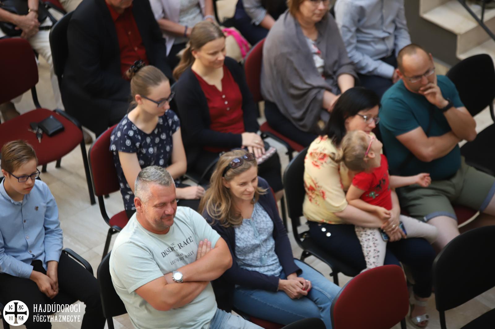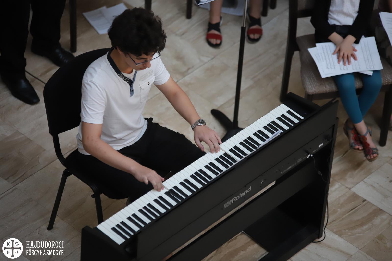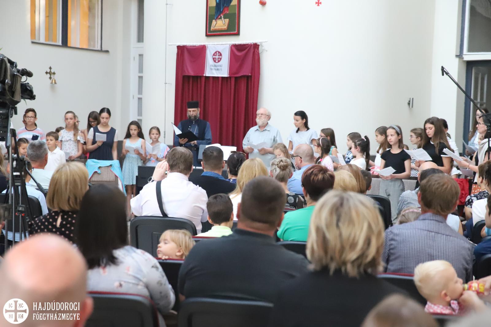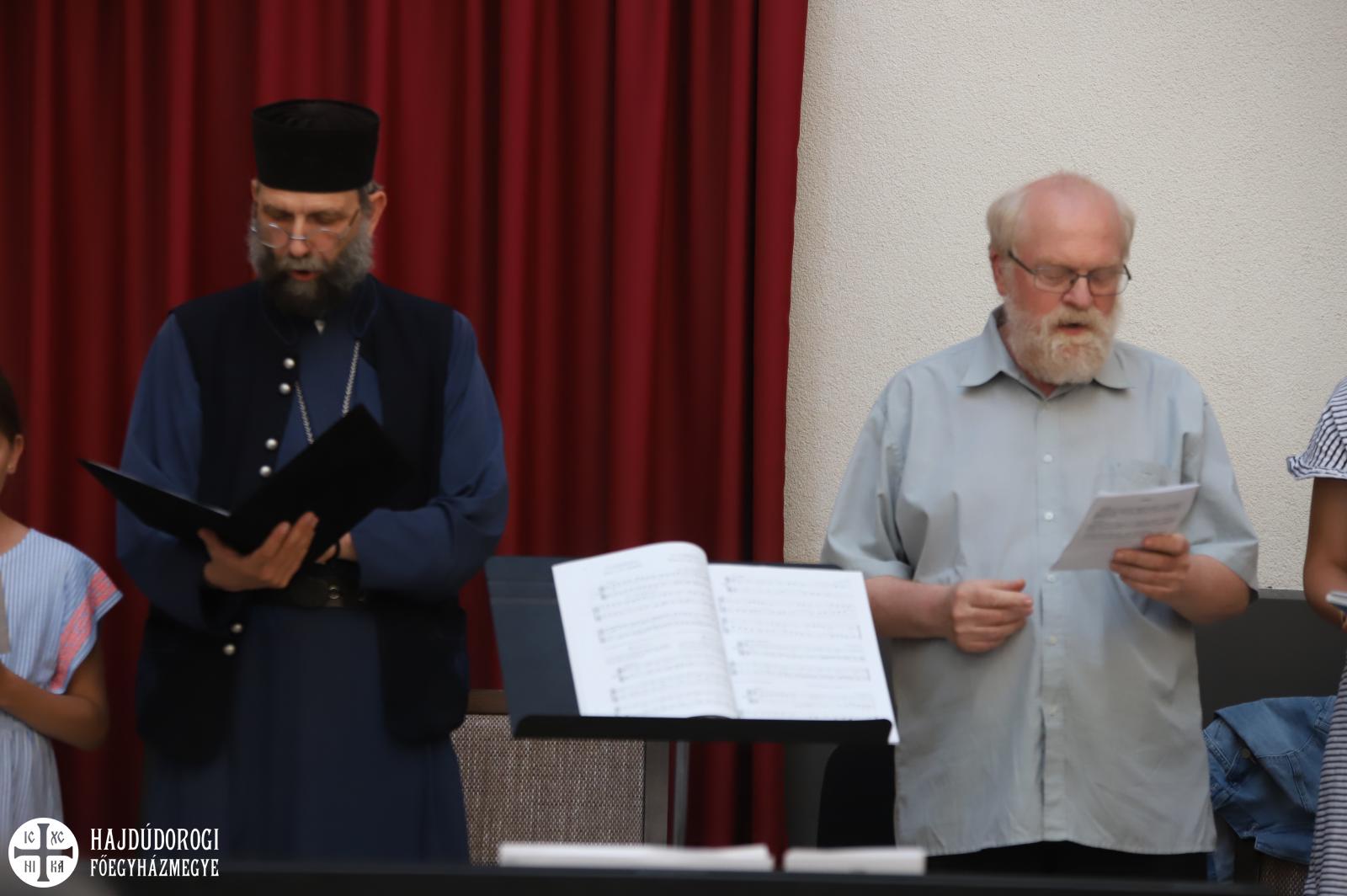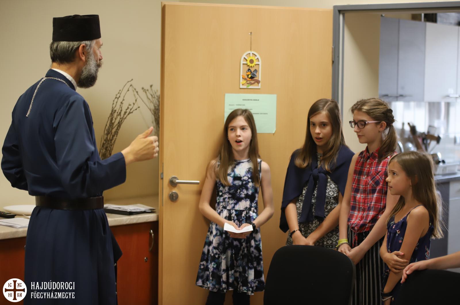 A Metropóliai Hivatalban megrendezett záróhangversenyen aztán kicsiktől a nagyokig – mindenki bemutatta tudását. Nem csak a táborban tanultakat adták elő, hanem népdalokat is énekeltek, verset szavaltak és többen hangszeren is játszottak. Fülöp metropolita atya szerint a közös fellépés nagyon jól megmutatta azt a különleges hangulatot, ami uralta az egész tábort.