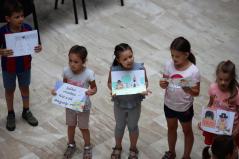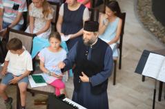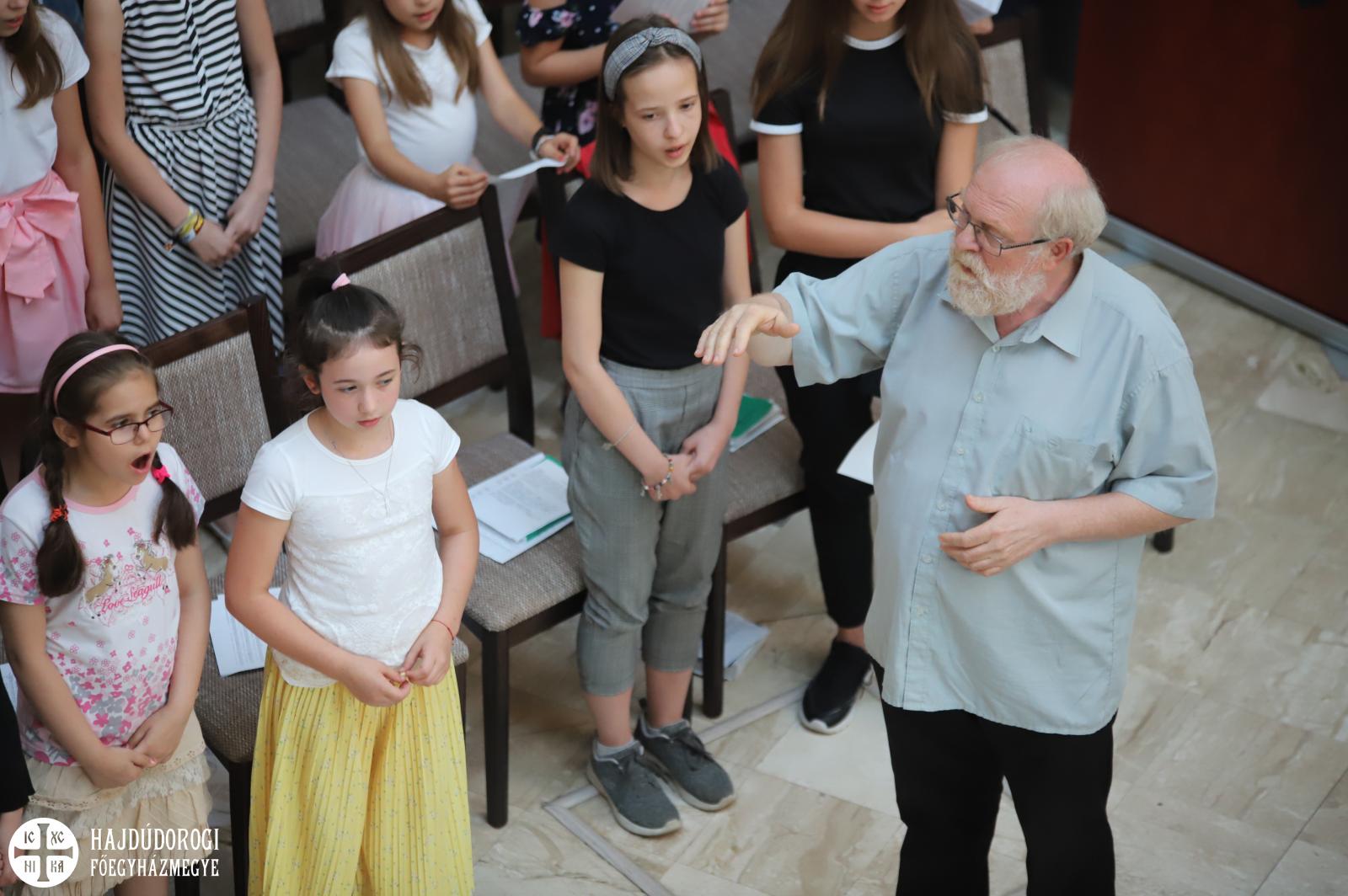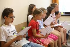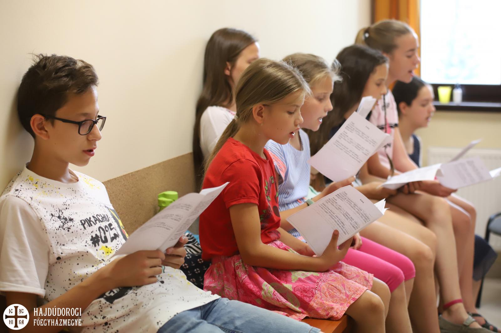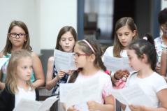 A tábor utolsó előtti napján is töretlen lelkesedéssel gyakoroltak a gyerekek, hiszen estére, a Metropóliai Hivatalban adhatták elő az egész héten megtanult énekeket.