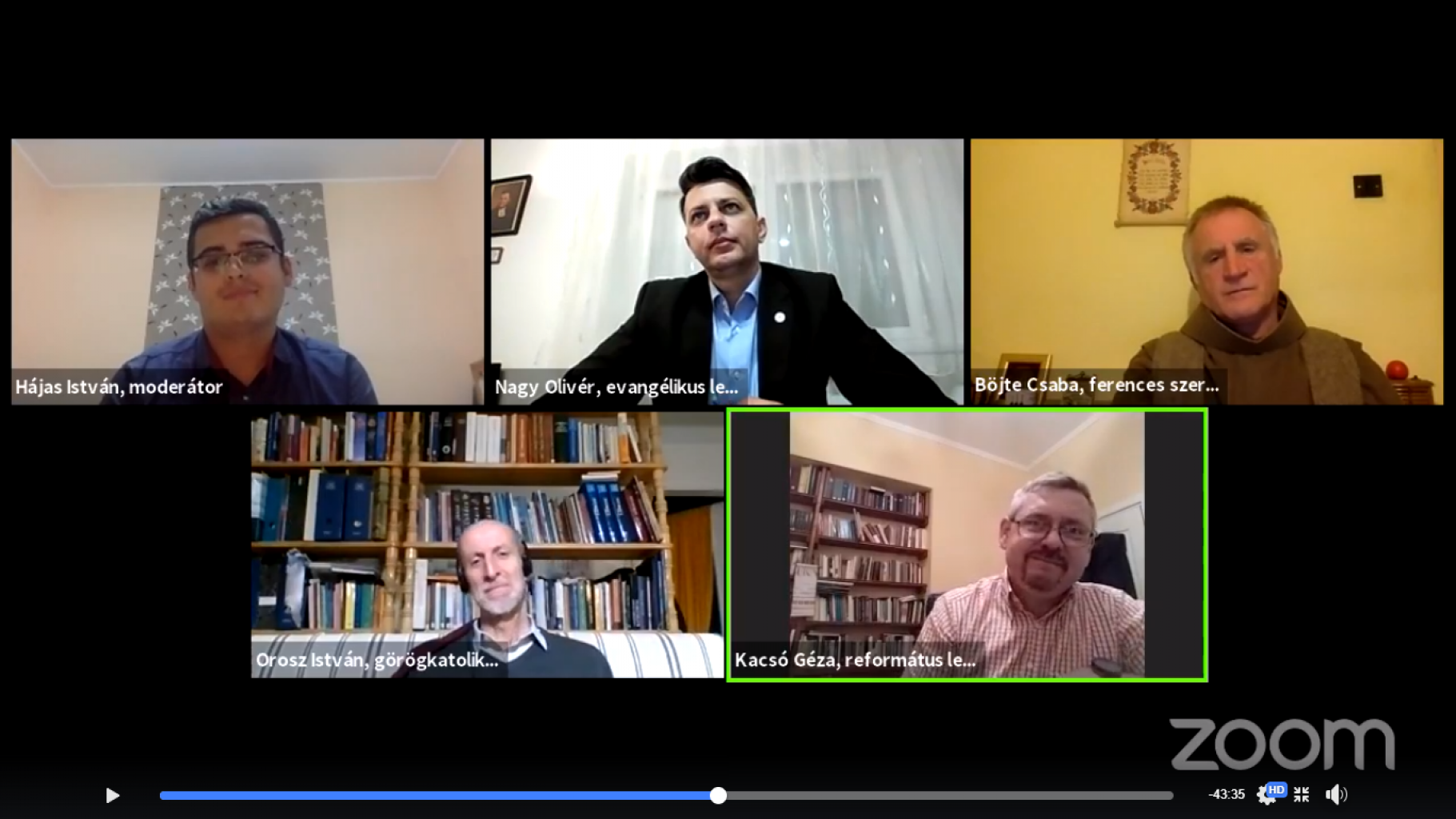 A kérdezők Böjte Csaba atyától szerettek volna választ kapni arra a kérdésre, hogy voltak-e zavargások vagy nemzetiségi villongások június 4-én a románok részéről Erdélyben, amire az atya nagyon frappáns választ adott: a vírushelyzet alakította úgy, hogy a románok ne tudjanak semmiféle nagy, közös megmozdulást csinálni, s talán nem is véletlen, hogy éppen most ez így alakult. Szintén Csaba testvér volt az, aki amellett, hogy nagyon értékes válaszokat adott, kicsit ő maga is a „beszólók” oldalára került, ugyanis az egész beszélgetés során igyekezett „provokálni” minden válaszadót. Természetesen abszolút pozitív értelemben, közös gondolkodásra hívva szolgatársait azzal kapcsolatosan, hogy hogyan lehetne egymáshoz közelíteni a kárpát-medencei népeket, s ha már Isten így rendelte, hogy együtt kell élnünk, mik azok a közös programok, amivel erősíteni lehetne az együttműködést, félretéve mindenféle nemzetiségi ellenérzést és százéves sérelmet. Kacsó Géza biciklikerék-hasonlata volt talán a legszemléletesebb a népek együttélésre nézve, mondván, hogy a küllők, ha egymáshoz nem is tudnak közeledni vízszintesen, függőlegesen akkor is egy irányba tartanak, s ez a közös pont, ami felé nézünk, az Krisztus kell, hogy legyen.