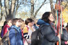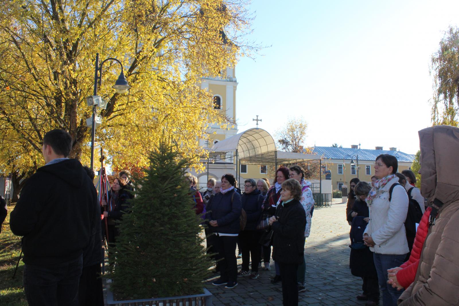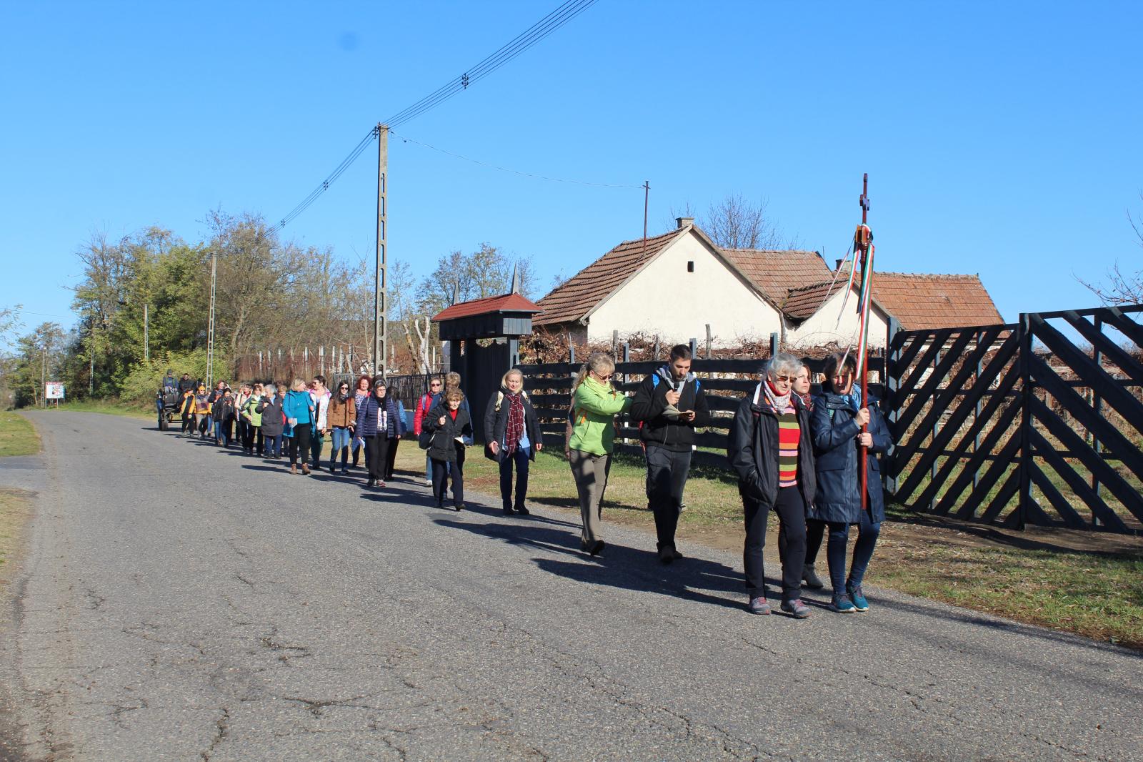 Azon a héten igen csapadékos volt az idő, mindig lógott az eső lába…de november 6-án, szombaton a Jóisten is látta, hogy ezeket a nőket semmi nem tántorítja el, hogy megérkezzenek testben és lélekben is a Szűzanyához. Meg is kapták az égi áldást: a zarándoklat napján egy felhő sem árnyékolta be az eget. Ragyogó napsütésben tették meg az utat, így csak egymásra és magukra figyelhettek. Egymásból töltekeztek és az imáikból.