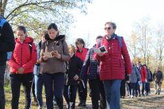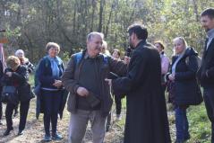 A kegyhely körüli erdőn-mezőn jártak, a boldogság állomások elmélkedéseit pedig parókus atya tartotta. A megállóknál egymást gazdagították gondolataikkal, és igyekeztek tovább elmélkedni a táblákra írt szövegek segítségével. Délelőtt 9 órai indulással meg is érkeztek a bazilikához 15 órára, ahol visszatérve Szent Liturgia volt.