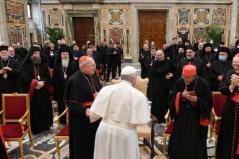 Fontos elkerülni az egyénieskedést a liturgiában, mely valójában a megosztottságot fejezi ki az egyes egyházakon belül. Azt se felejtsük el, hogy ortodox testvéreink figyelnek bennünket: még ha nem is ülhetünk együtt az eucharisztia asztalához, szinte mindig ugyanazokat a liturgikus szövegeket imádkozzuk és ünnepeljük. Figyeljünk oda tehát az olyan kísérletezésre, mely árthat a látható egység folyamatának Krisztus tanítványai között – figyelmeztetett a pápa, majd leszögezte: a világ azt kéri tőlünk, hogy tegyünk tanúságot a szeretetközösségről. Ha mi botrányt okozunk a liturgikus vitákkal – amint az a közelmúltban sajnos előfordult -, akkor csak a megosztás mesterének a kezére játszunk. Ferenc pápa végül bátorítását és áldását küldte a Keleti Egyházakhoz tartozó híveknek, majd imákat kért személyére, és imáiról biztosította a plenáris ülés résztvevőit.