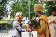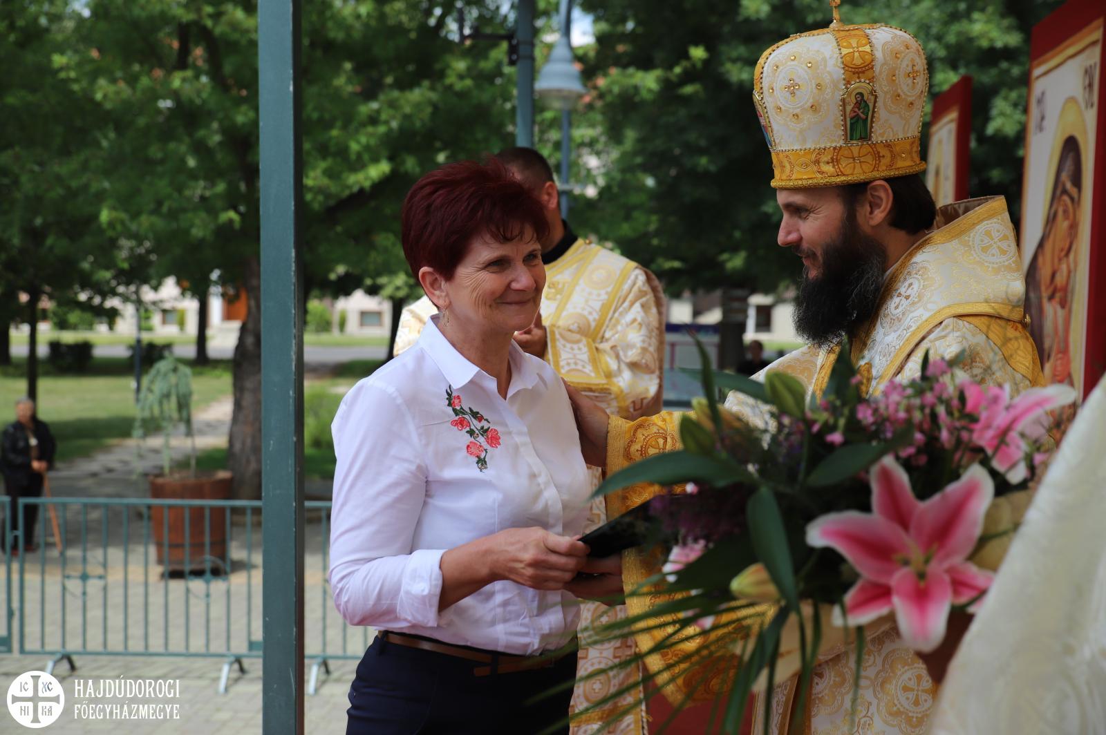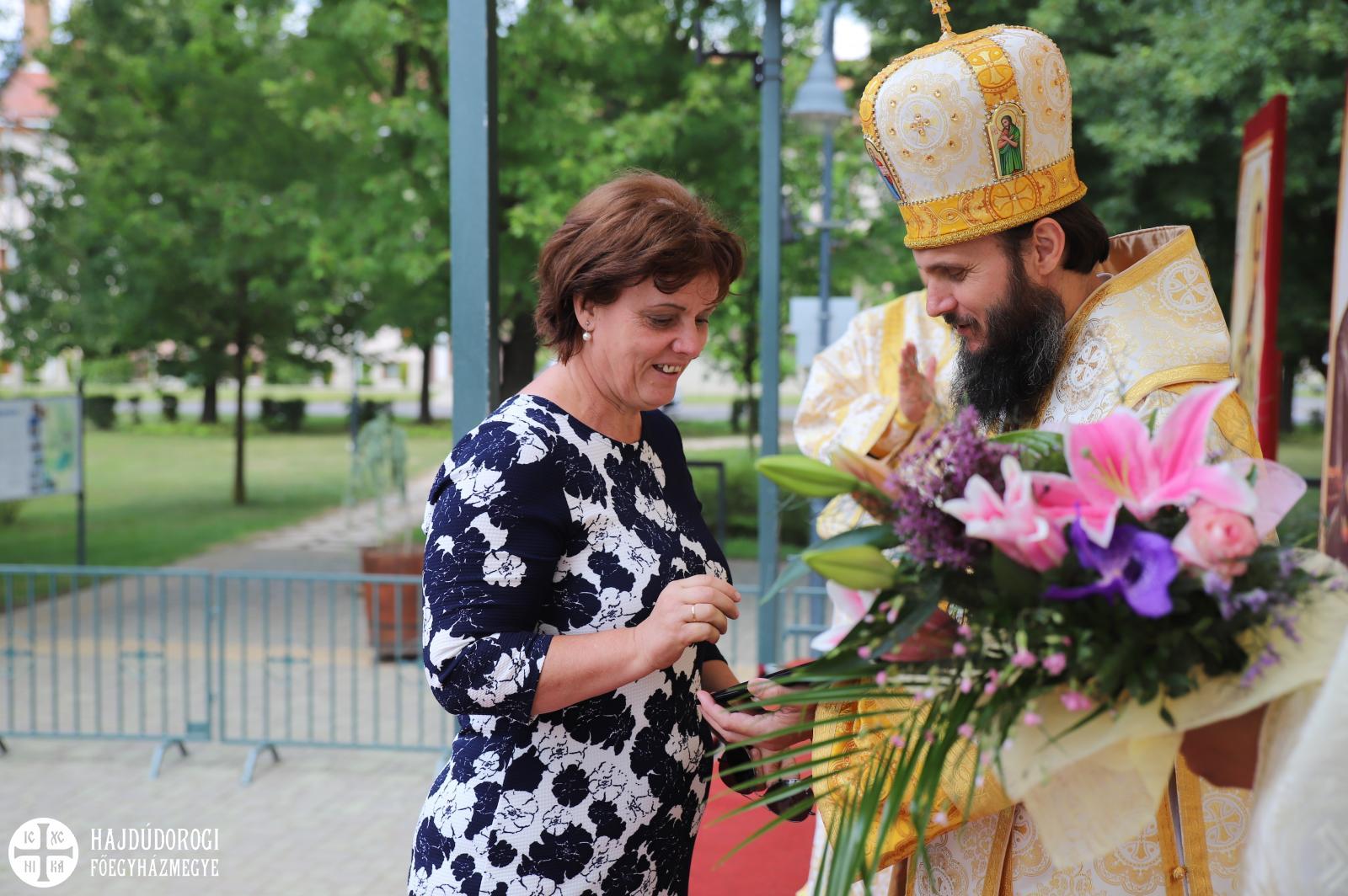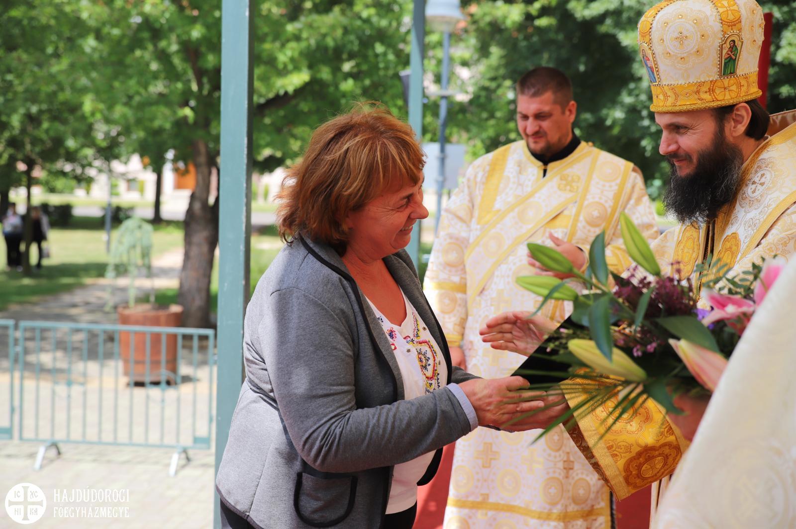 Az ünnepség zárásaként egy-egy virágcsokorral köszöntötték azt a két pedagógust, akik állami kitüntetésben részesültek a 2017/18-as tanévben. Elsőként Oláhné Kanyó Andrea a szolnoki Szent Tamás Görögkatolikus Óvoda és Általános Iskola intézményvezetőjét majd Szabó Attilát, a mátészalkai Móricz Zsigmond Görögkatolikus Kéttannyelvű Általános Iskola intézményvezetőjét köszöntötte Kocsis Fülöp érsek-metropolita.