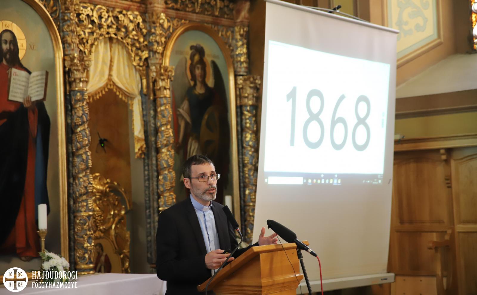 150 évvel ezelőtt Hajdúdorogon gyűltek össze először a Kárpát-medencében élő magyar ajkú görögkatolikusok. Ennek kapcsán „Ki múltjára érzéketlen, szebb jövőre érdemtelen” címmel kezdte meg az előadások sorát Dr. Véghseő Tamás atya, a Szent Atanáz Görögkatolikus Hittudományi Főiskola rektora. A múltidéző prezentációról egy korábbi írásunkban (Volt miért hálát adni-metropóliai nap Hajdúdorogon címmel) olvashatnak hosszabban.