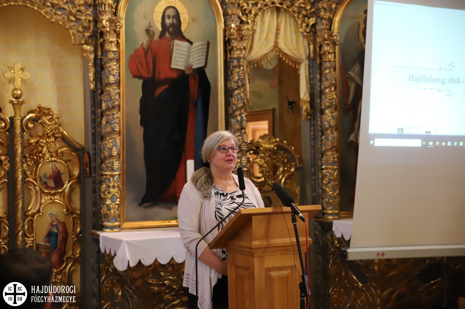 A rendszerváltást követő időszakról beszélt Inántsy-Pap Ágnes is. A Szent Atanáz Görögkatolikus Hittudományi Főiskola Nyelvi Lektorátusának vezetője doktori kutatásának témáját: a görögkatolikus egyházi fenntartású köznevelési intézmények sajátosságait szemléltette. Mint elmondta: a magyarországi Görögkatolikus Metropólia a katolikus egyházon belüli önálló entitás, amely három saját egyházmegyével és sajátos arculattal rendelkezik. Az államosítást megelőző időszakban több mint 140 iskolát tartott fenn, amelyek mindegyike 1948-ban állami kézbe került. Ma már újra nagyszámú gyermek, több mint 5000 diák tanul görögkatolikus fenntartású oktatási és nevelési intézményben.
