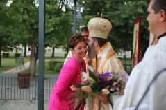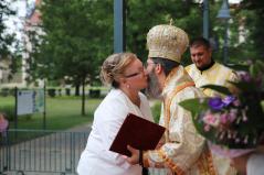A pedagógus feladata az, hogy az apák szívét a gyermekek felé fordítsa. A pedagógusnak nem csak a gyermekkel kell törődni; nem tud eredményt elérni, ha nem találja meg az utat az édesapák és édesanyákhoz, az együttműködésre.” Majd érsek atya felidézte, fél évvel ezelőtti útjukat, amikor Atanáz és Ábel püspökkel együtt találkoztak Ferenc pápával, aki beszélgetésük során felhívta a figyelmet arra, hogy megszakadt a szülő, pedagógus és gyermek közötti hármas szövetség. Újjá kell ezt építeni – buzdított mindenkit a metropolita –, csak így lehet fölkészíteni, szabaddá tenni őket arra, hogy be tudják fogadni az Istent. Ám ehhez pedagógusoknak, szülőknek is nyitottnak kell lenni, ami engedelmesség nélkül nem fog menni. Érsek atya végezetül Isten áldását kérte a pedagógusok munkájára, a gyermekekre.
