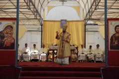 Mivel hatalmas létszámban, legalább 1100-an tisztelték meg részvételükkel a búcsút, ezért a szakmai programokat élőben közvetítették azok számára, akik nem a kegytemplomban foglaltak helyet. Így az Emmánuel-házban, a Családvárban és a Zarándokházban is gond nélkül lehetett hallgatni az előadásokat. Majd a pedagógusok egy helyre „tömörültek”: a kegytemplom előtti térre, ahol Püspöki Szent Liturgia kezdődött Kocsis Fülöp érsek-metropolita vezetésével illetve Orosz Atanáz és Szocska Ábel püspök atyák valamint a jelenlévő áldozópapok koncelebrációjával.