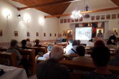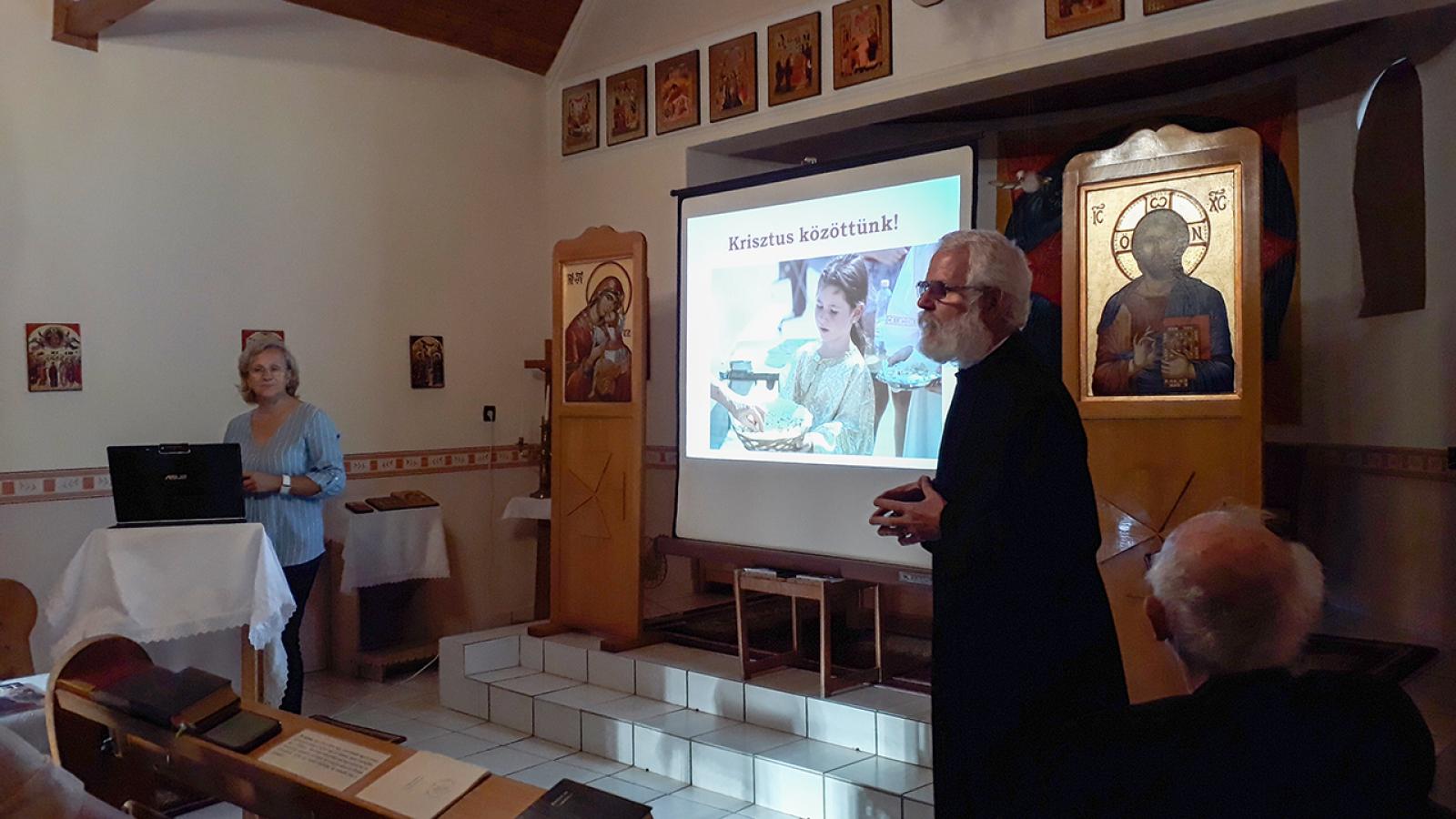 Az előadó történelmi áttekintést nyújtott egészen az ókortól kezdve napjainkig a „megjelölt” kenyérről, melyen a „Jézus Krisztus győz” felirat szerepel, melyet egy speciális pecséttel nyom bele a kis cipócskába a proszfora készítője, aki néhány kivételes esettől eltekintve mindig a papné. Az első századokban a kereszttel megjelölt kenyeret, majd a tiszta finom búzalisztet a hívek hozták. Ennek még valahol most is hagyománya van, hogy a lisztet, vagy a mirováláskor a liszt vásárlása céljából tálcára tett pénzösszeget a hívek adják. Szó volt a lítia során megszentelt kenyérről, valamint az antidor fogalmáról is.