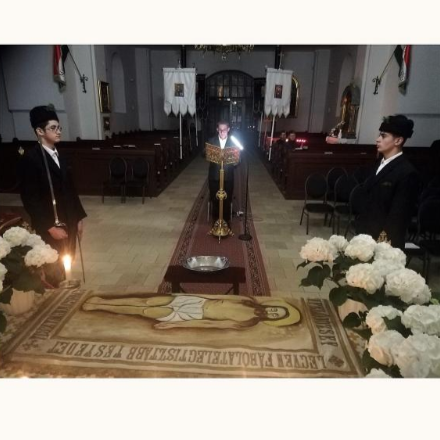Csend volt a templomban. Csak néhány bácsi ült egymástól távol a padokban. Mi hátul ültünk. Elkezdtünk magunkban imádkozni. Most jobban ment, mint amikor a liturgián vagyunk. Egyszer csak hangos dobogás hallatszott, mintha menetelnének, nagyon megijedtem, megkérdeztem apától, hogy mi ez a hang, de erre bejöttek a Krisztus-katonák. Amikor beléptek a templomba, már nem féltem tőlük, három katona volt, ekkor az jutott eszembe, hogy egyszer majd az öcsém is ilyen Krisztus-katona lesz. Leváltották egymást, láttam kimenetelni a sírnál eddig álló katonákat a vezetőjükkel, szerettem nézni, ahogy menetelnek. Ha visszagondolok a virrasztásra, egy szép élményként marad meg, mert bár nagyon hangosak voltak, mégis örültem, hogy őrzik Krisztus sírját.