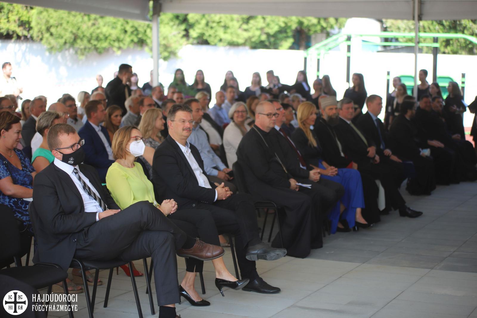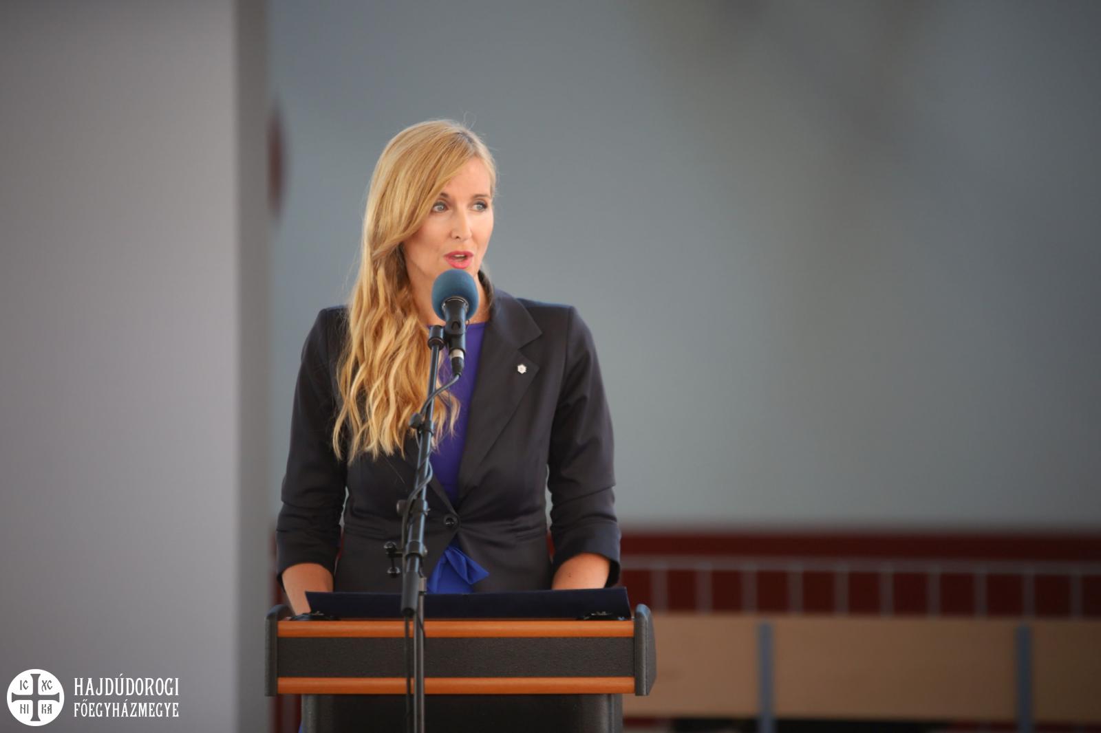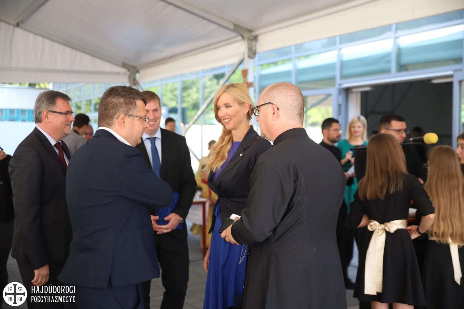 Az ünnepséget megtisztelte jelenlétével Szabó Tünde sportért felelős államtitkár, aki beszédében utalt az ókori mondásra - ép testben, ép lélek -, ami Debrecenben megvalósul, hiszen majdnem minden gyerek sportol. Kijelentette továbbá, hogy nemcsak nagy nemzetközi versenyek helyszíne a megyeközpont, hanem a kisebb létesítmények is fontosak a városnak, így a versenyzőkön kívül a fiatalok sportolására is odafigyelnek. Az 1800 négyzetméter alapterületű sportcsarnok legalább olyan fontos, mint a Duna Aréna vagy a Puskás Akadémia - fogalmazott. A továbbiakban emlékeztetett arra, hogy a kormány minden támogatást megad a 2014-ben bevezetett mindennapos testneveléshez. Az pedig, hogy az egyház és a civil társadalom egymásra talált itt, a legjobb példája az egészség megőrzésének.