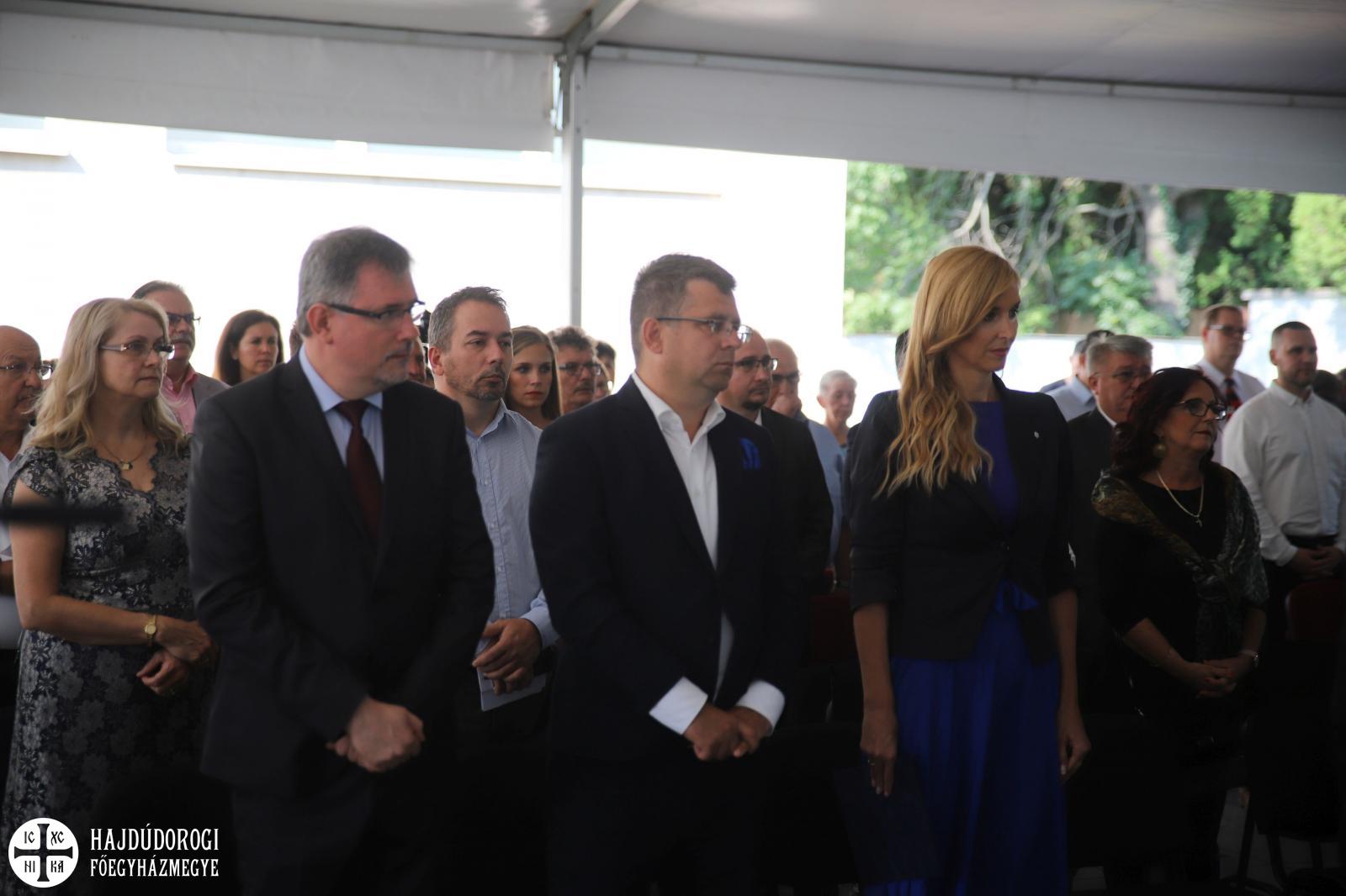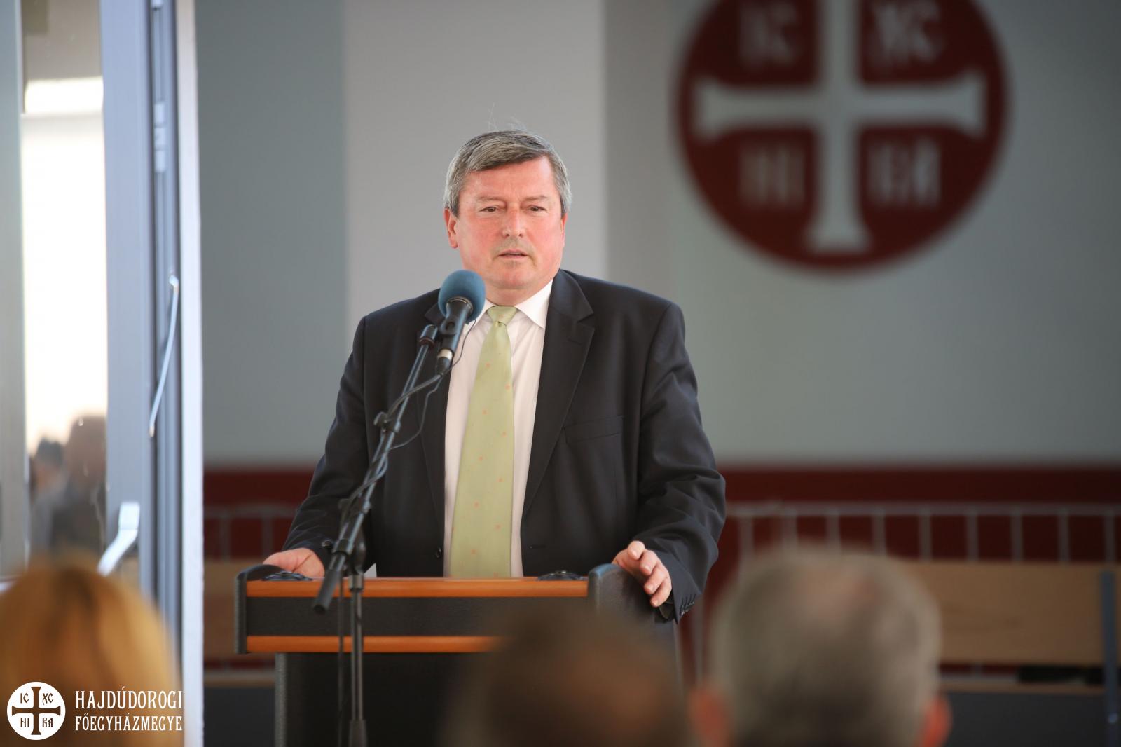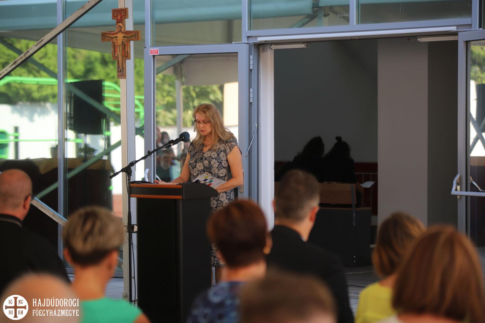 Az ünnepséget megtisztelte jelenlétével Szabó Tünde sportért felelős államtitkár, aki beszédében utalt az ókori mondásra - ép testben, ép lélek -, ami Debrecenben megvalósul, hiszen majdnem minden gyerek sportol. Kijelentette továbbá, hogy nemcsak nagy nemzetközi versenyek helyszíne a megyeközpont, hanem a kisebb létesítmények is fontosak a városnak, így a versenyzőkön kívül a fiatalok sportolására is odafigyelnek. Az 1800 négyzetméter alapterületű sportcsarnok legalább olyan fontos, mint a Duna Aréna vagy a Puskás Akadémia - fogalmazott. A továbbiakban emlékeztetett arra, hogy a kormány minden támogatást megad a 2014-ben bevezetett mindennapos testneveléshez. Az pedig, hogy az egyház és a civil társadalom egymásra talált itt, a legjobb példája az egészség megőrzésének.