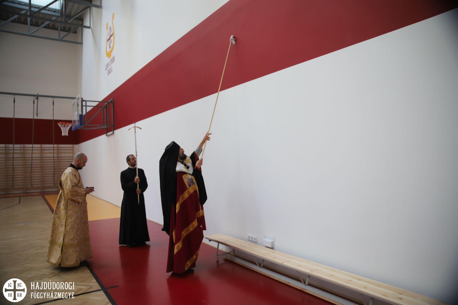 Nagyszabású ünnepségen lett felszentelve az iskola megújult épülete és a tornacsarnok. Utóbbi négy oldalát Fülöp metropolita atya olajjal is megkente. Tanításában azt mondta: amikor megáldunk egy házat, raktárat, óvodát, iskolát, sportcsarnokot, akkor oda a megáldás révén, az Egyház imádsága folytán belép Jézus és attól kezdve ott van. Majd a mai napon elhangzott evangéliumra utalva, ami Zakeus történetét elevenítette fel (Lk 19,1-10) elárulta, hogy még hitoktató korában fára mászó versenyt tartott a ministránsok között Hajdúdorogon.