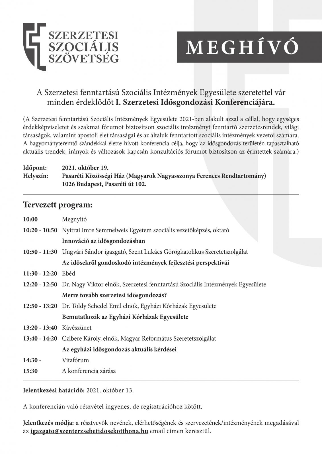 Hagyományteremtő szándékkal, első alkalommal szervez a frissen megalakult Szerzetesi fenntartású Szociális Intézmények Egyesülete konferenciát az idősgondozásról. Az eseményen előad a Szent Lukács Görögkatolikus Szeretetszolgálat igazgatója, Ungvári Sándor is. Részletek a meghívóban.
