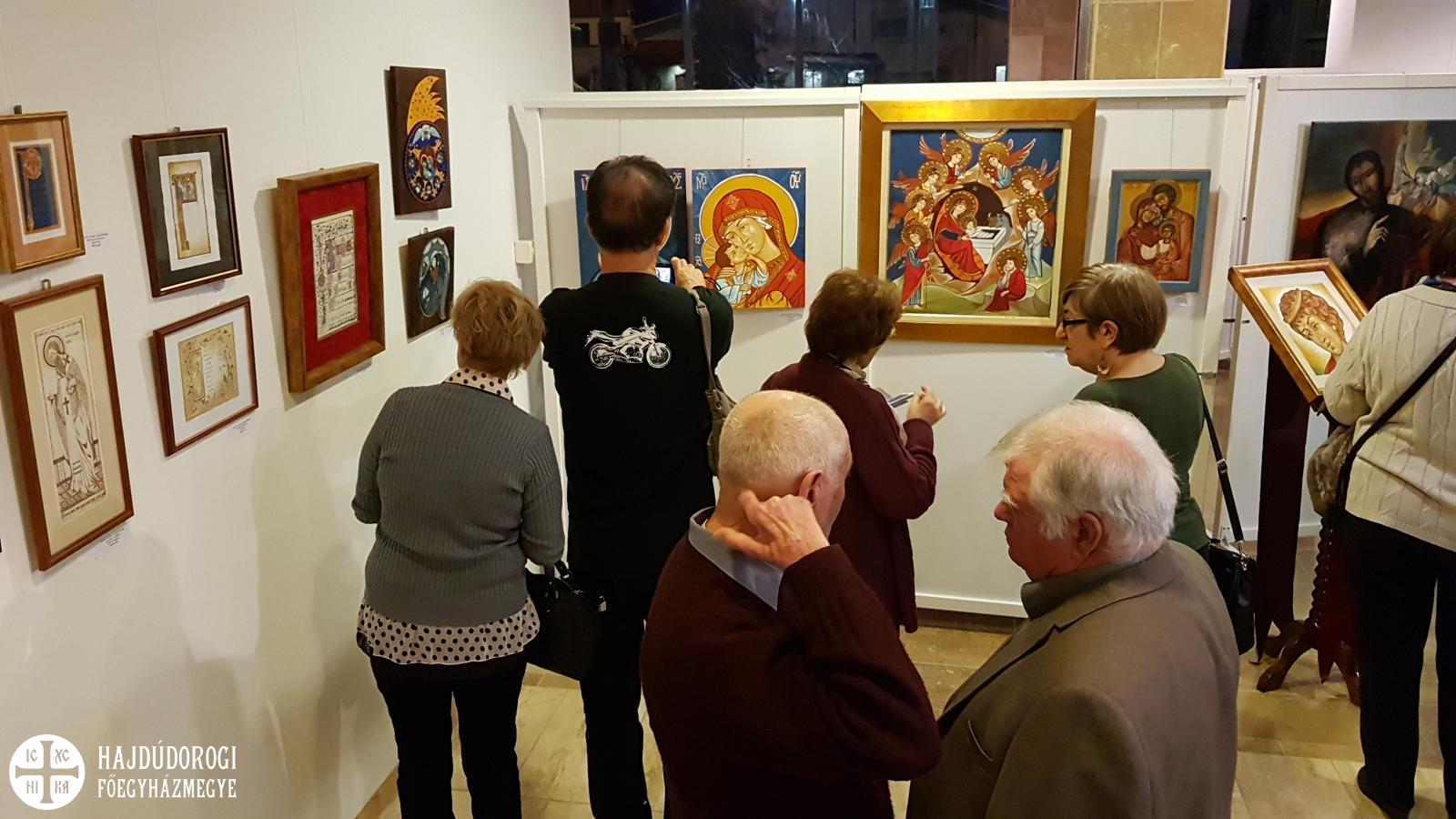 Talán mert az alkotók – nagyon sokan – olyan témákat festettek meg, melyeknek ihletője a hitük, a Szentírás, az Egyház, szentek, ünnepek vagy csak Isten-keresésük. Nem meglepő, hiszen így volt ez mindig is a történelemben, hogy az Isten nem hagyja nyugton az embert, a művésze embert sem. S ők a maguk eszközeivel igyekeznek megmutatni valamit abból, amit ők látnak, vagy láttatni akarnak. Főként a környékünkön élő művészek nagyon gazdag tárlata ez. A fafaragástól, a tűzzománcon át, a különféle stílusú festményekig – beleértve az ikonokat is – nagyon sok gyönyörű alkotás gazdagíthatja a látogató lelkét. S mivel Hajdúszoboszlón ez volt az első ilyen témájú kiállítás, ezért is óriási öröm, hogy már a megnyitón is volt legalább 150 ember. S azóta is nagyon sokan felkeresik.